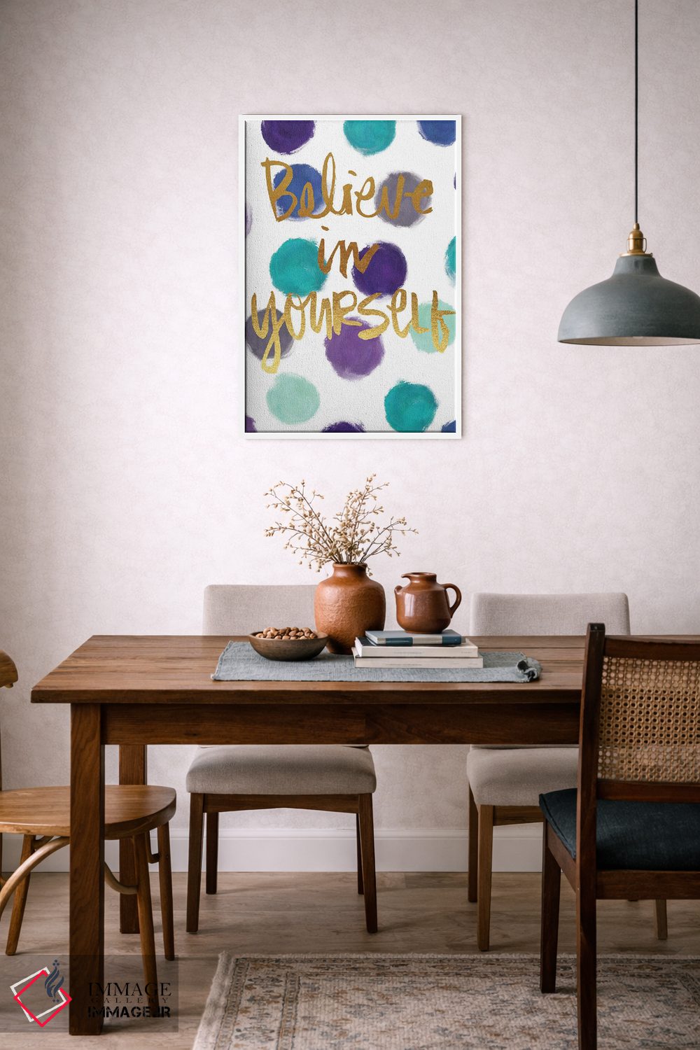 بوم گالری ایماژ طوری طراحی شده که اثر روی دیوار «پرداختشده» و حرفهای دیده شود—نه پرزرقوبرقِ بیپایه؛ بلکه دقیق و خوشپرداخت. با بافت ظریف کنواس، حس اثر هنری را در نگاه نزدیک نگه میدارد بدون اغراق؛ فقط دقیقتر. در قابپذیری، هماهنگی قاب با پالت رنگ جلوه را تقویت میکند. حاصل کار، یک تابلو خوشنشین است که هم از دور اثرگذار است و هم از نزدیک خوشخوان؛ برای هدیهی هنری هم انتخاب محترمانهای است. در کنار چوب و متریالهای طبیعی، بافت کنواس دلنشینتر دیده میشود.