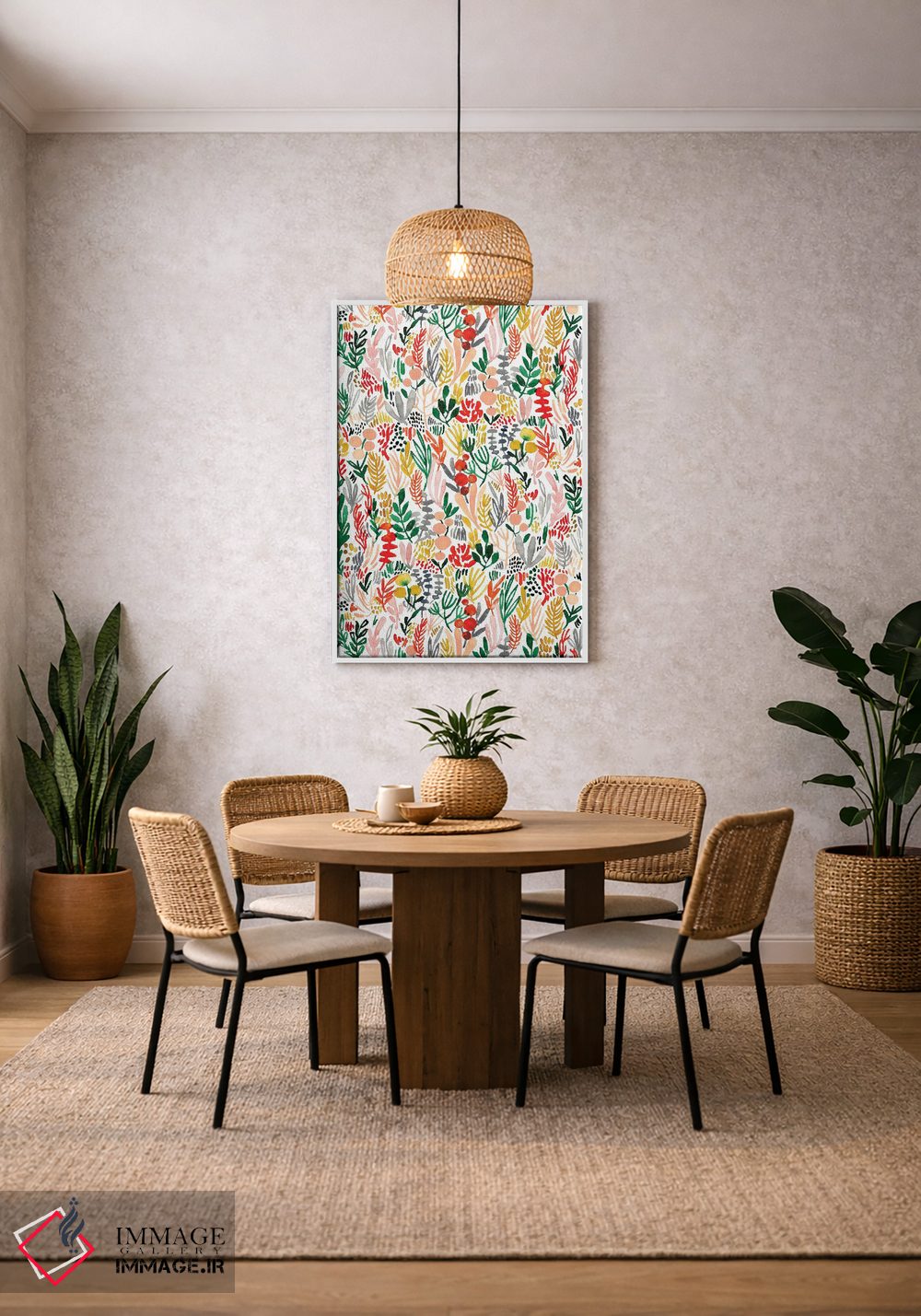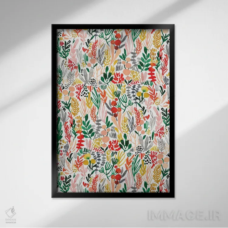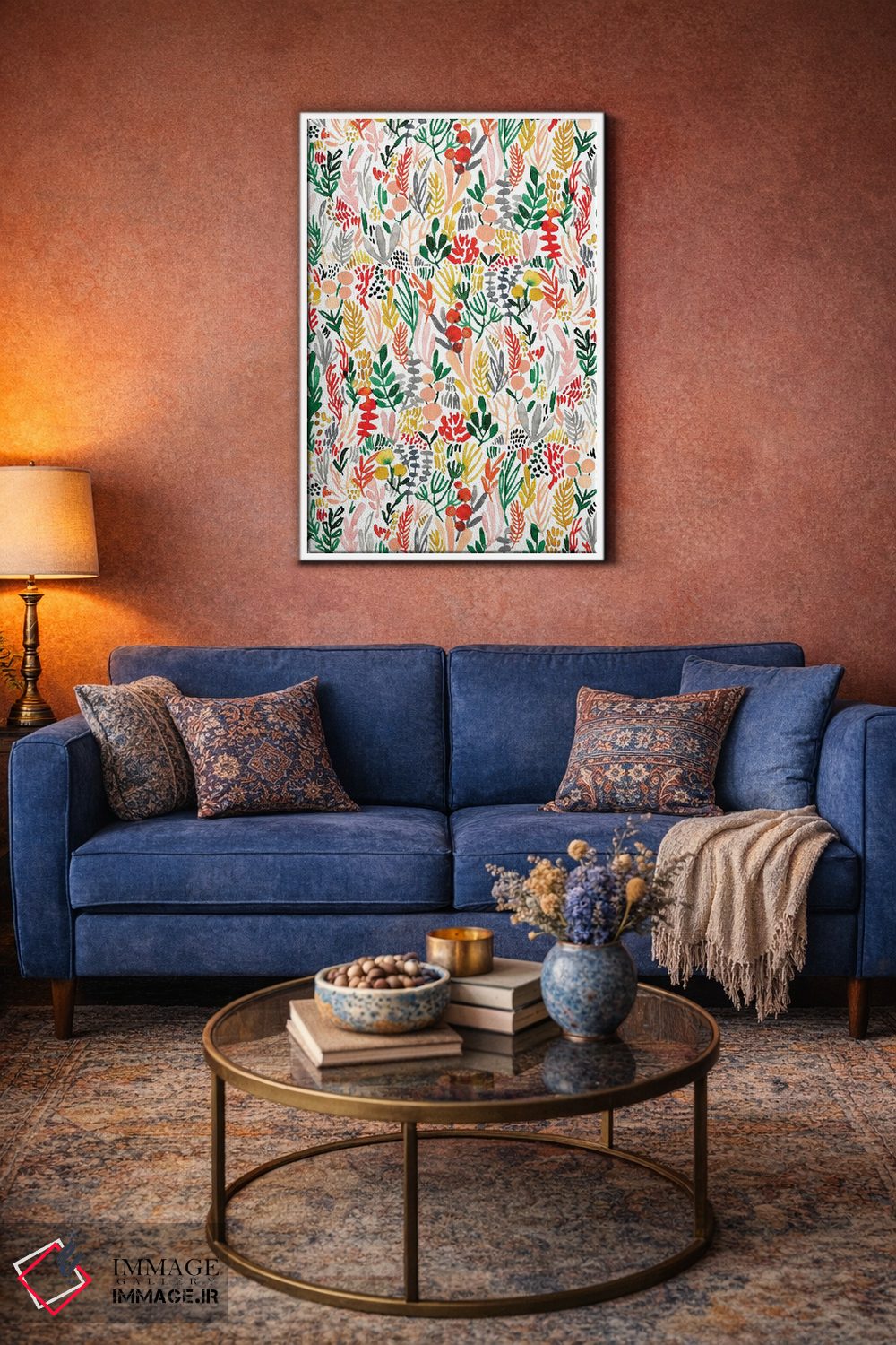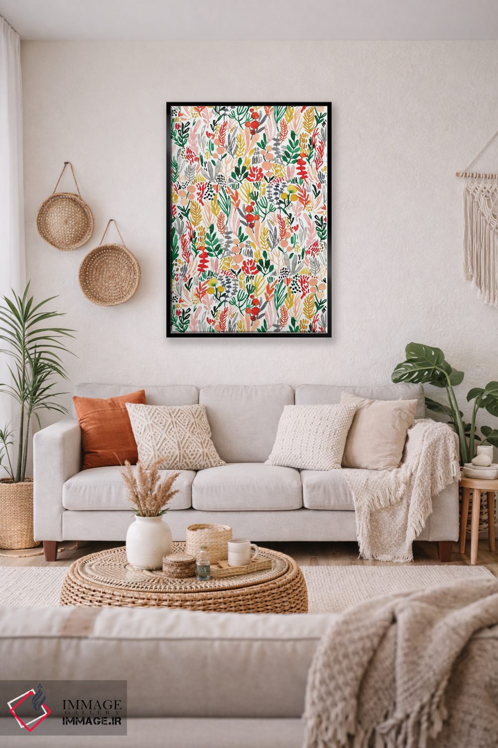 براساس پالت ترکیبی اثر، قاب تیک گرم (چوبی) پیشنهاد اول است و مشکی مات (فریم متوسط) مکمل. برای سفارشهای پروژهای با ابعاد و قابهای اختصاصی با ایماژ در تماس باشید.