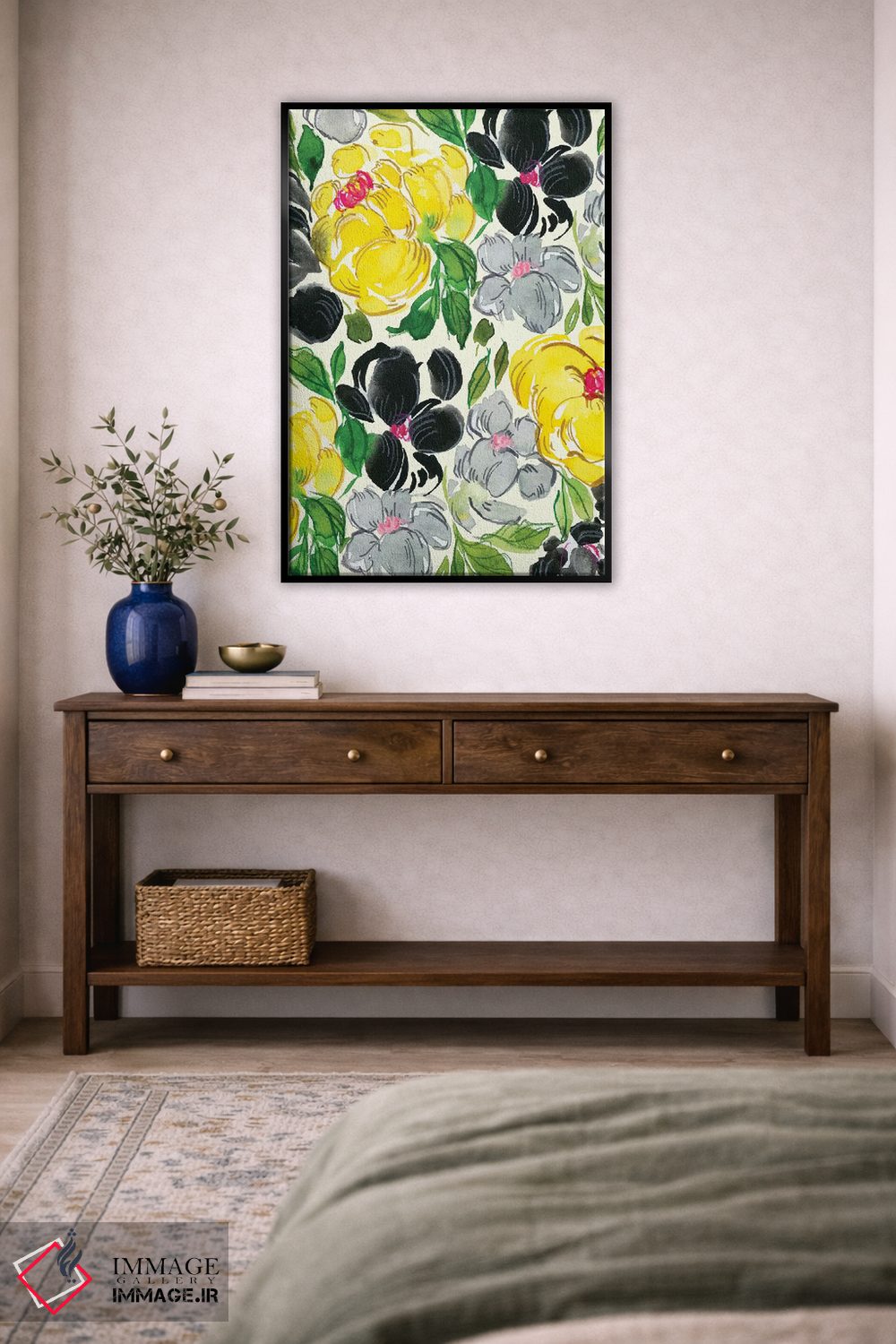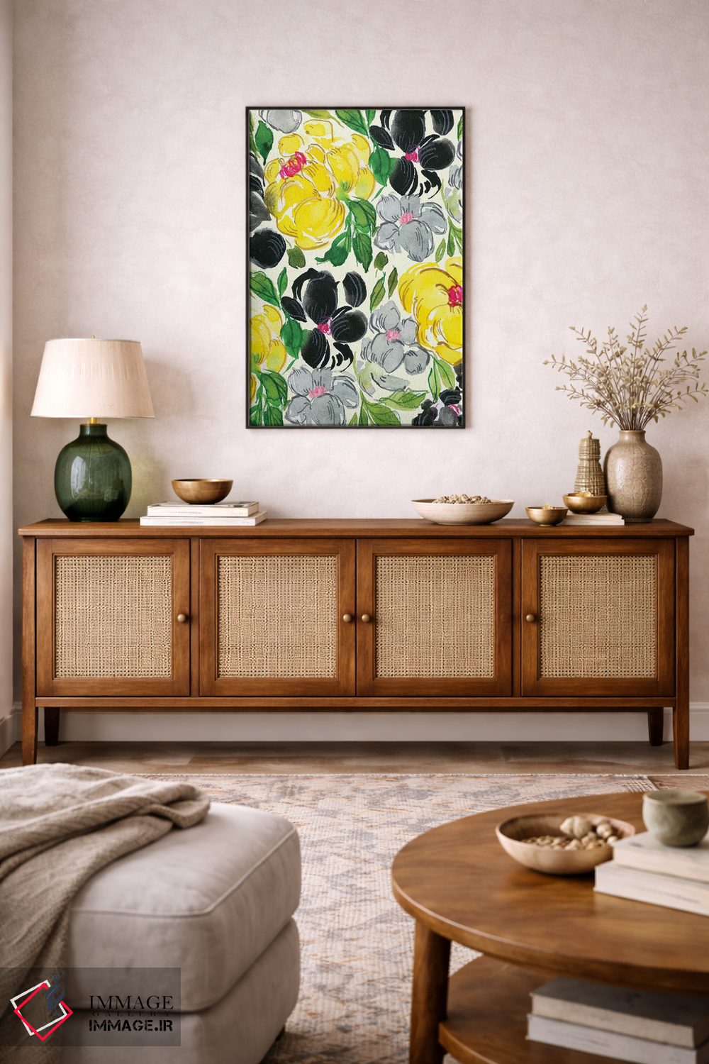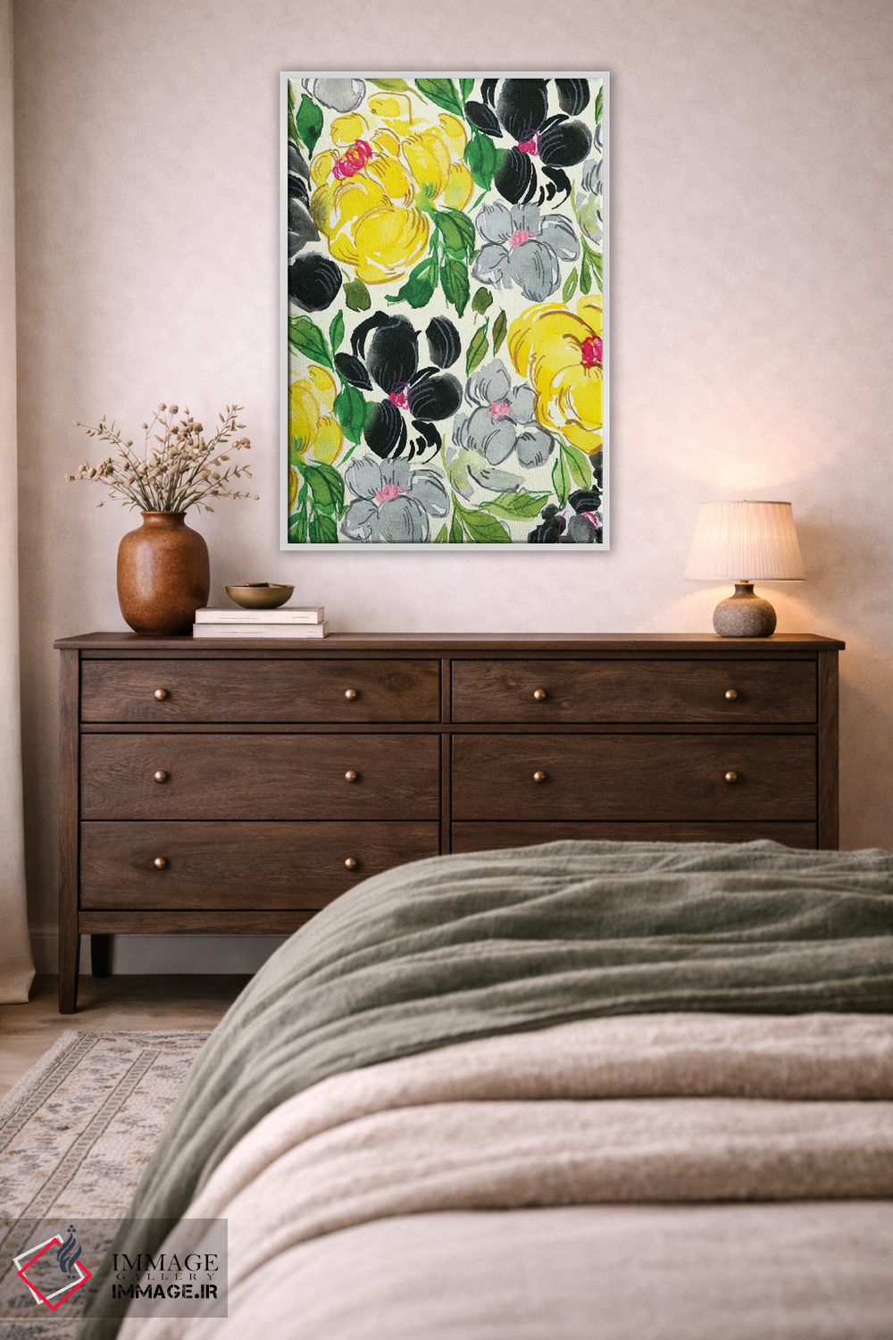 در «گلهای مجلل شماره ۱» اثرِ «جوی تینگ»، گلها و گیاهان برای دیوارهای ساده، یک لطافتِ دقیق میسازد؛ برای نشیمنهای روشن انتخابی خوشسلیقه است. حضورش آرام است، اما بیاثر نیست.