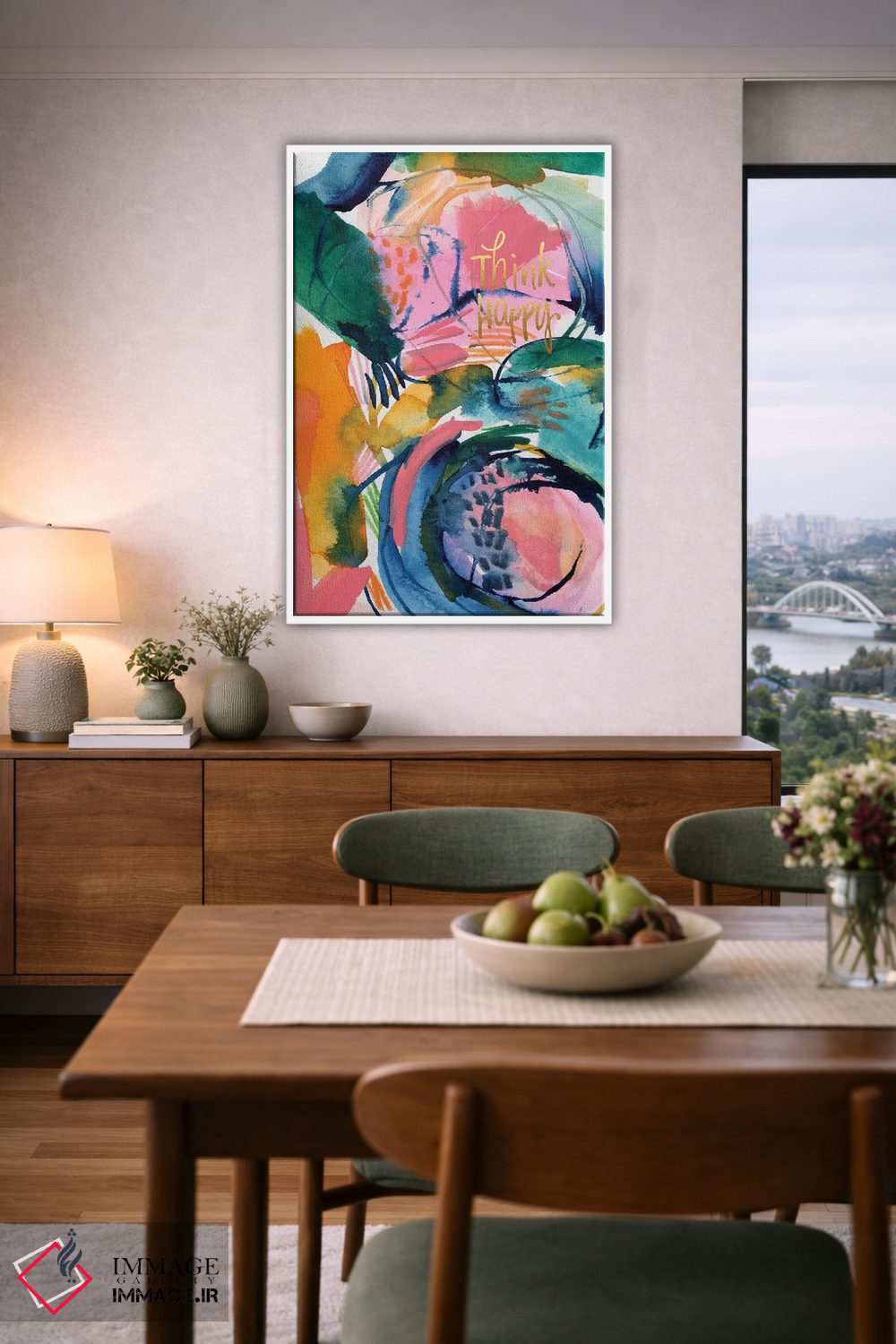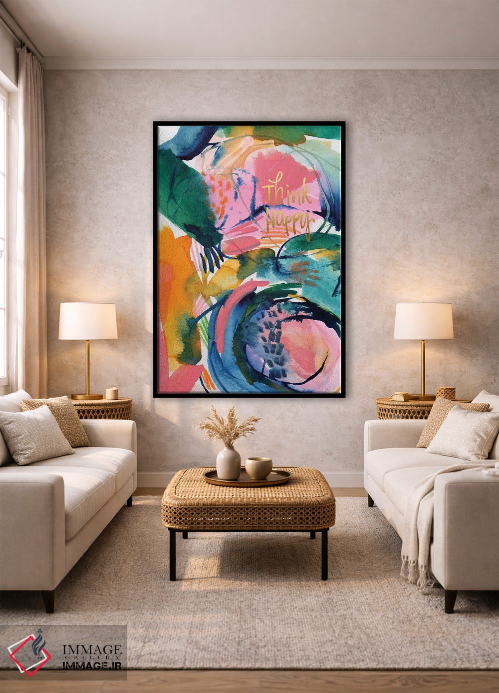 «الهام نقاشانه شماره ۲» اثرِ «جوی تینگ» در قالب هنری، به فضا عمق و ریتم میدهد؛ برای کنار مبلمان ساده و نورپردازی گرم عالی است.