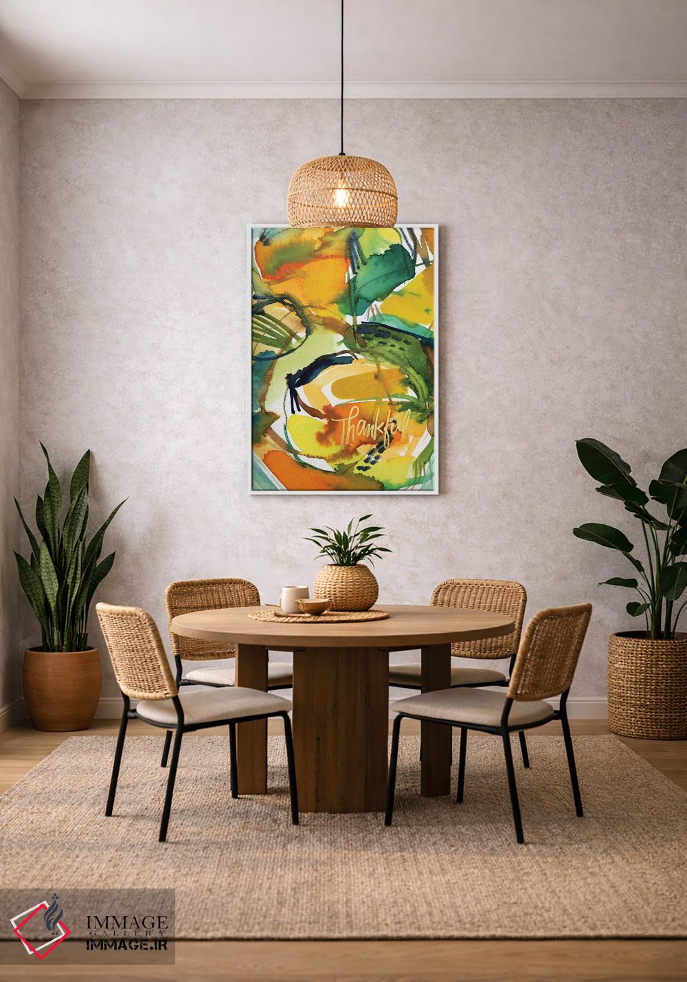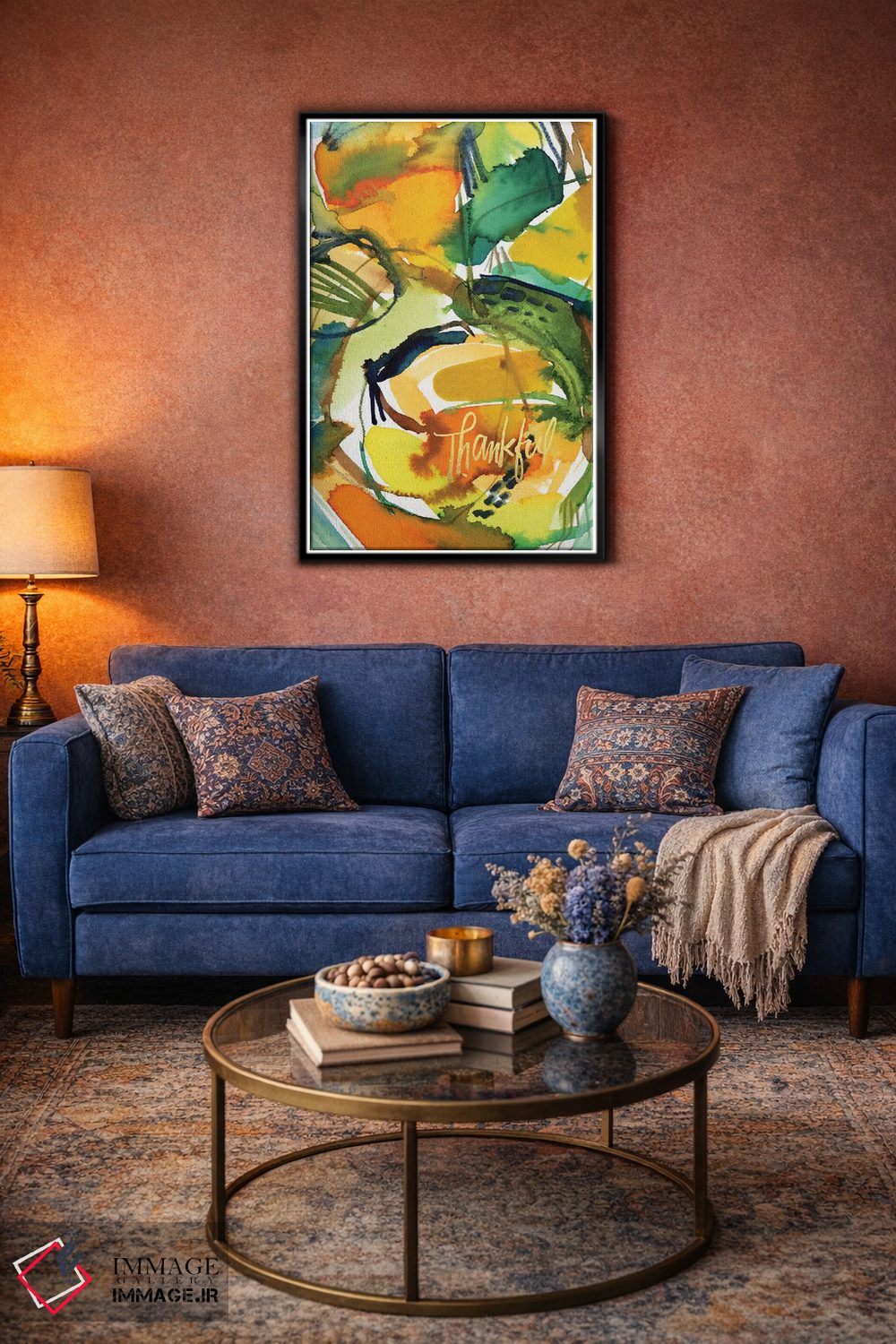 براساس پالت ترکیبی اثر، قاب تیک گرم (چوبی) پیشنهاد اول است و مشکی مات (فریم متوسط) مکمل. برای سفارشهای پروژهای با ابعاد و قابهای اختصاصی با ایماژ در تماس باشید.