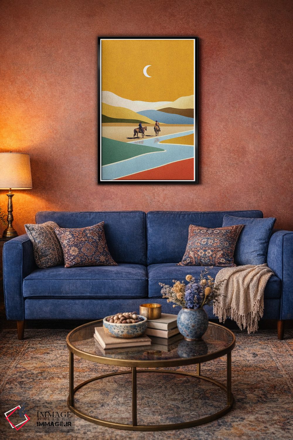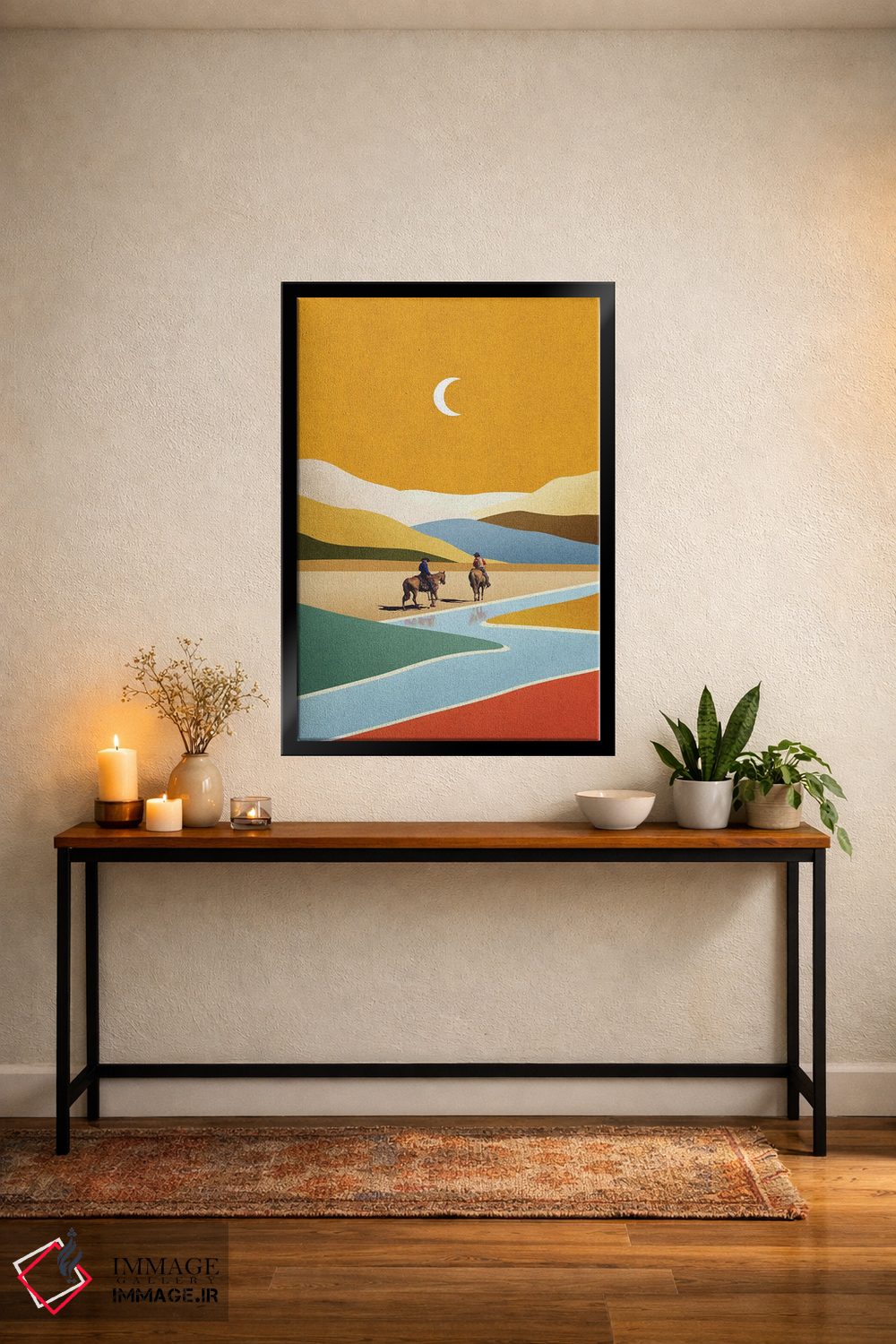 براساس پالت ترکیبی اثر، قاب تیک گرم (چوبی) پیشنهاد اول است و مشکی مات (فریم متوسط) مکمل. برای سفارشهای پروژهای با ابعاد و قابهای اختصاصی با ایماژ در تماس باشید.