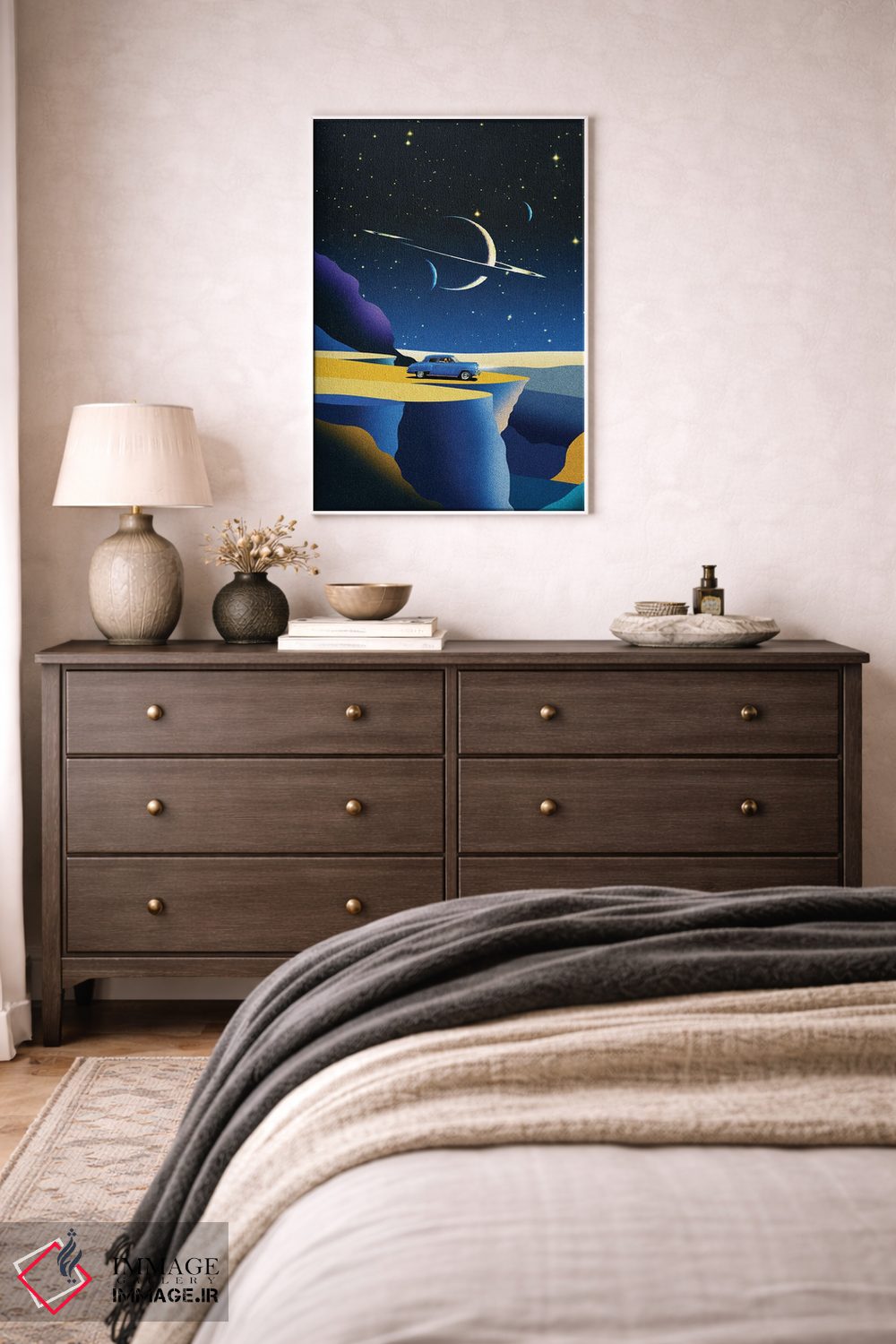 بوم گالری ایماژ نسخهی دکوراتیوِ سطحبالا از یک اثر هنری است. روی کنواس سفیدِ یکدست و بدون اسید با فرآیند چاپ حرفهای جیکلی (Giclée) و کنترل دقیق تونها با جوهرهای آرشیویِ حرفهای برای لایههای رنگی خواناتر؛ روی دیوار، کار یکدستتر و خوشکیفیتتر دیده میشود. تابلو پس از آمادهسازی روی کلاف کشیده میشود و نصب آن ساده و بیدردسر است.