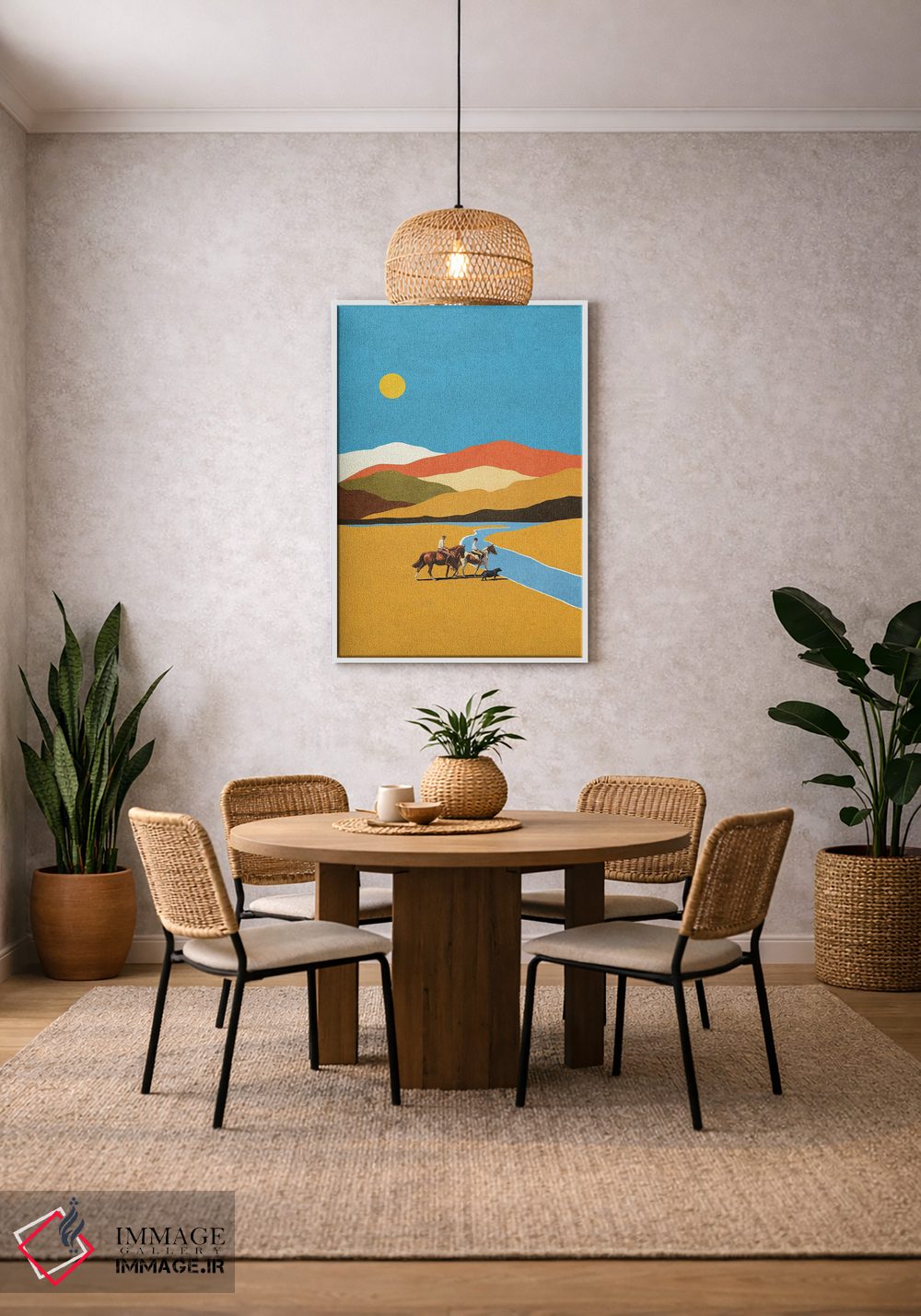 بوم گالری ایماژ طوری طراحی شده که اثر روی دیوار «پرداختشده» و حرفهای دیده شود—نه پرزرقوبرقِ بیپایه؛ بلکه دقیق و خوشپرداخت. بافت ظریف کنواس باعث میشود حس اثر هنری را در نگاه نزدیک نگه میدارد. با کنترل تونها، کمک میکند رنگها روی دیوار واقعیتر بنشینند بدون اغراق؛ فقط دقیقتر. این کیفیت برای دکورهای دقیقتر و پروژههای حرفهای خودش را بهتر نشان میدهد؛ و اگر بخواهید، میتوان چیدمان را برای گالریوال هم پیشنهاد داد.