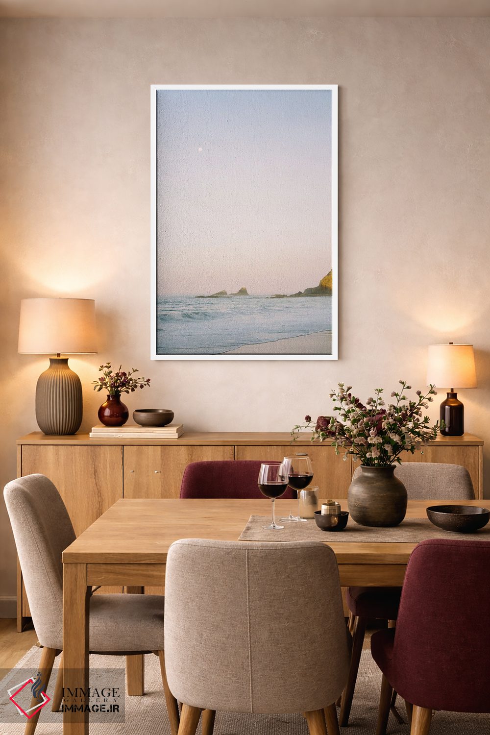 برای سلیقههایی که به جزئیات احترام میگذارند، «طلوع آفتاب در ساحل غربی» اثرِ «جاستین میلتون» به چیدمان، عمق و وقار میدهد؛ برای فضاهای مدرن با خطوط ساده پیشنهاد میشود. اگر میخواهید یک اثر همیشه «بهروز» بماند، انتخاب خوبیست.