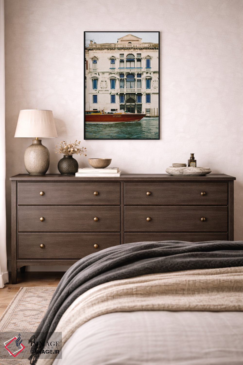 برای دیواری که میخواهید سلیقهتان را آرام و دقیق نشان بدهد، «کانالهای ونیز» اثرِ «جاستین میلتون» اتاق را جمعوجورتر و مرتبتر نشان میدهد؛ برای فضاهایی که میخواهید مرکز توجه داشته باشند پیشنهاد میشود. اگر میخواهید مهمانها مکث کنند، این اثر دلیل خوبیست.