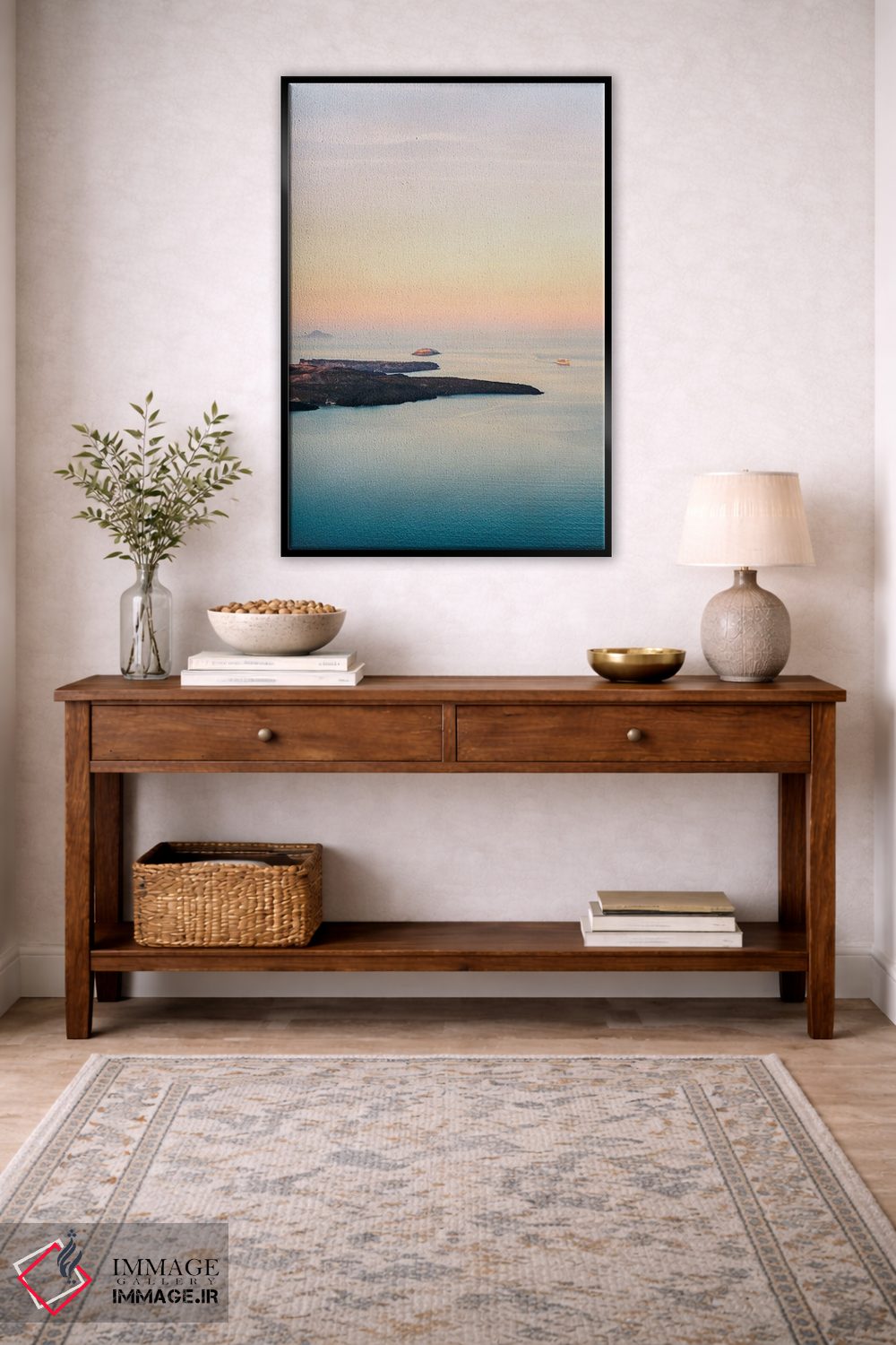برای سلیقههایی که به جزئیات احترام میگذارند، «غروب کالدرای سانتورینی» اثرِ «جاستین میلتون» یک «نقطهٔ مکث» خوشسلیقه میسازد؛ برای کافهها و فضاهای عمومی کوچک پیشنهاد میشود. جزئیاتش نزدیکِ کار هم ارزش نگاه دارد.