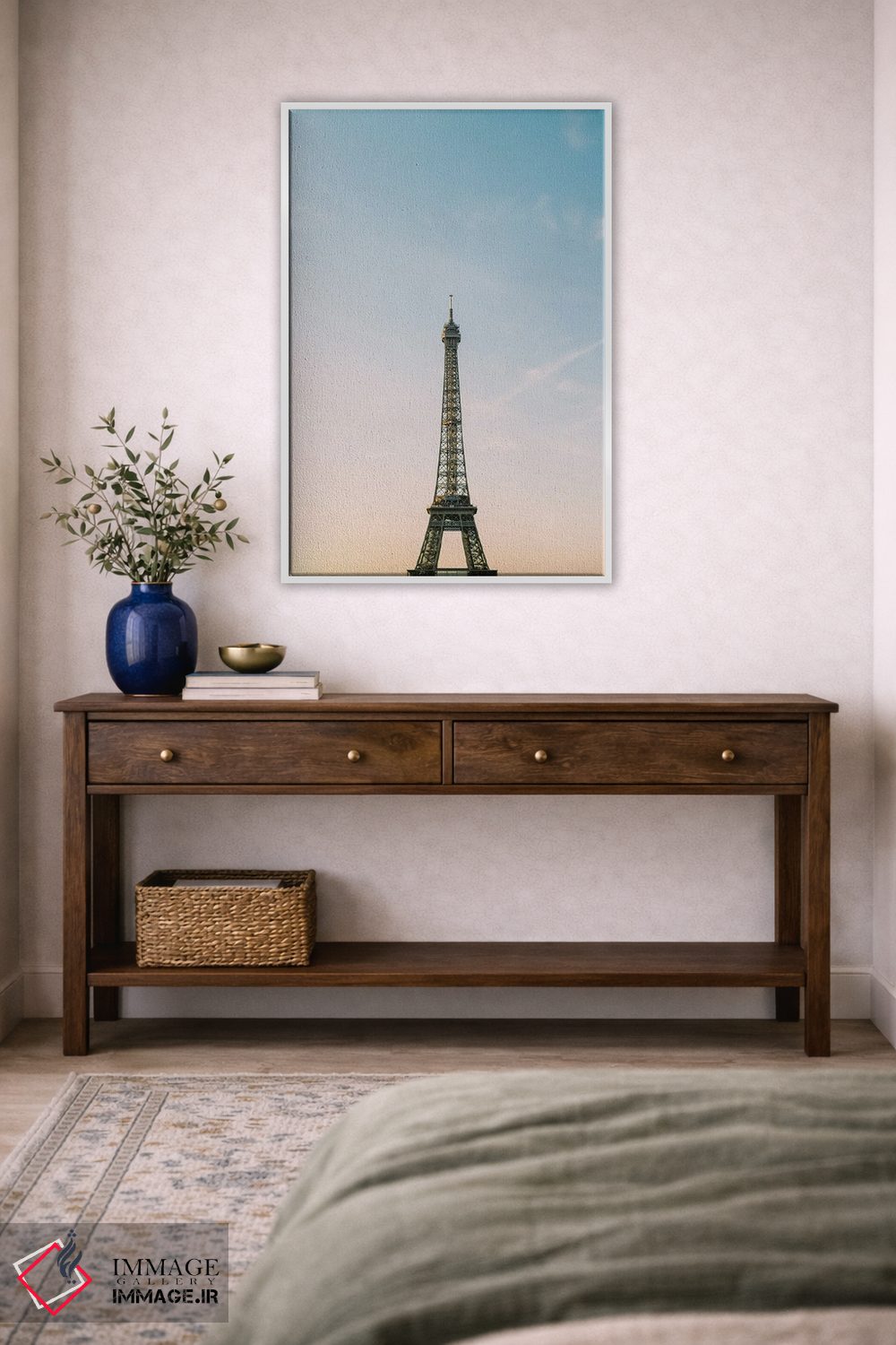«طلوع آفتاب در پاریس» اثرِ «جاستین میلتون» از آن انتخابهاییست که فضا را روشنتر و زندهتر نشان میدهد؛ برای فضاهایی که میخواهید آرام اما جدی دیده شوند انتخابی عالی است. با مبلمان خنثی، تضاد دلنشینی میسازد.