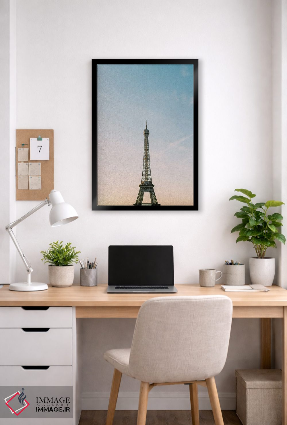 براساس پالت سرد اثر، قاب بلوط روشن (چوبی) پیشنهاد اول است و استخوانی ملایم مکمل. برای سفارشهای پروژهای با ابعاد و قابهای اختصاصی با ایماژ در تماس باشید.