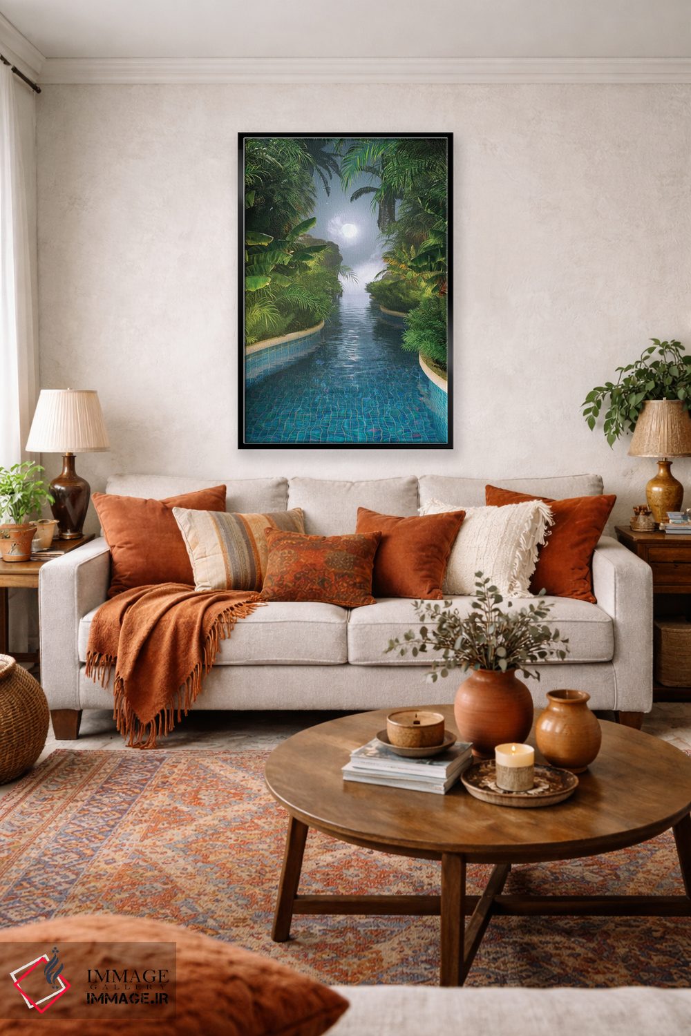 طراحی بوم گالری ایماژ بهگونهای است که اثر روی دیوار «پرداختشده» و حرفهای دیده شود—نه پرزرقوبرقِ بیپایه؛ بلکه دقیق و خوشپرداخت. با بافت ظریف کنواس، حس اثر هنری را در نگاه نزدیک نگه میدارد و برای محیطهای رسمیتر هم انتخاب مطمئنی است. کنترل تونها کمک میکند از تند شدن ناخواستهی رنگها جلوگیری میکند بدون اغراق؛ فقط دقیقتر. حاصل کار، یک تابلو خوشنشین است که هم از دور اثرگذار است و هم از نزدیک خوشخوان؛ اگر فضا کمینهگرا است، همین پرداخت تمیز کافی است.
