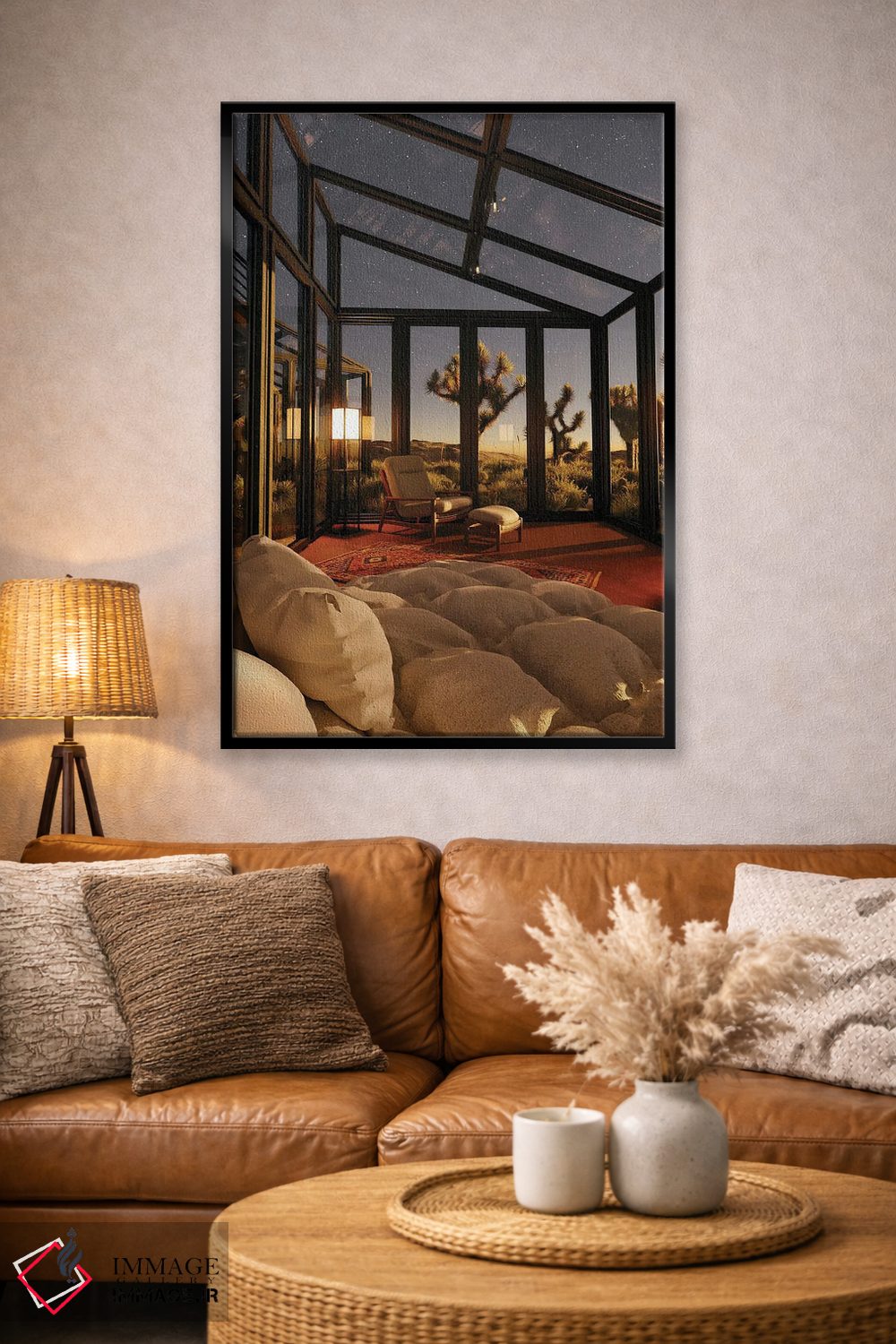 براساس پالت گرم اثر، قاب تیک گرم (چوبی) پیشنهاد اول است و مشکی مات (فریم متوسط) مکمل. برای سفارشهای پروژهای با ابعاد و قابهای اختصاصی با ایماژ در تماس باشید.