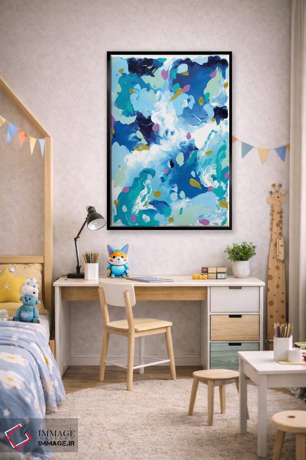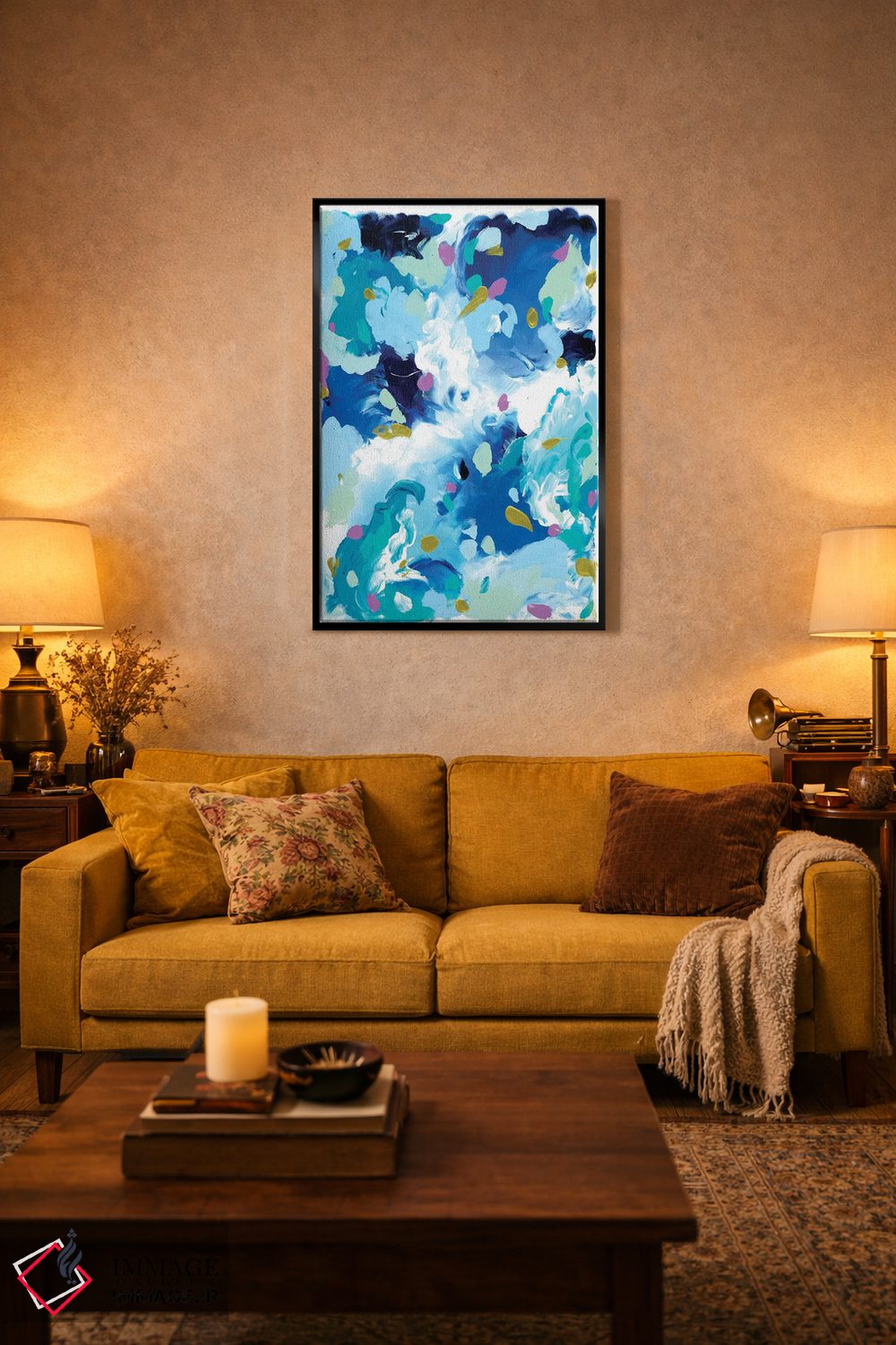 براساس پالت ترکیبی اثر، قاب تیک گرم (چوبی) پیشنهاد اول است و مشکی مات (فریم متوسط) مکمل. برای سفارشهای پروژهای با ابعاد و قابهای اختصاصی با ایماژ در تماس باشید.