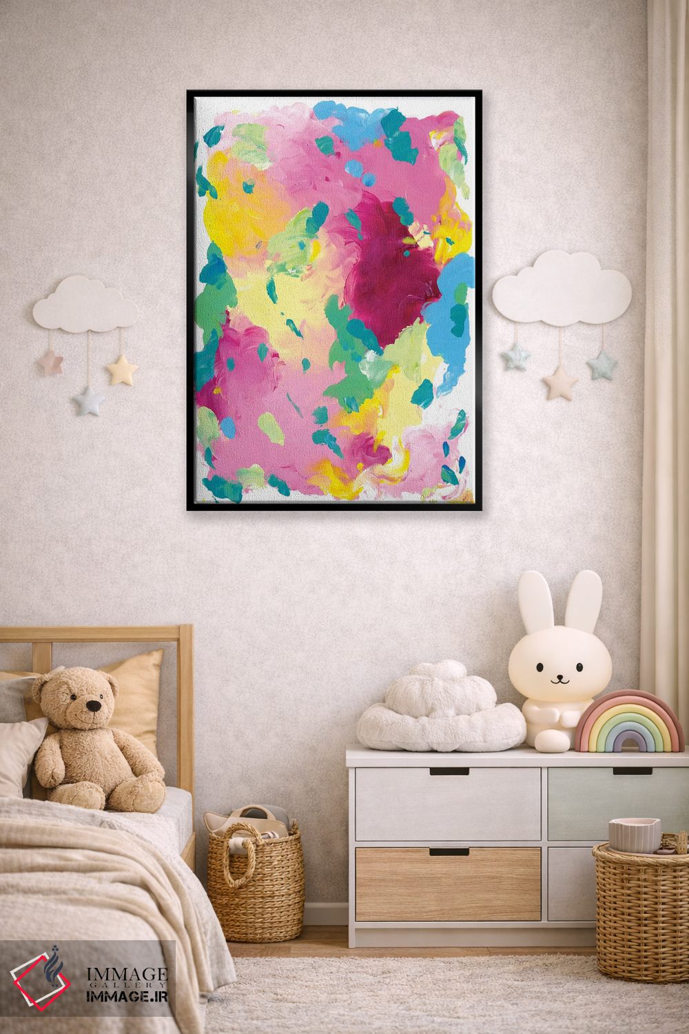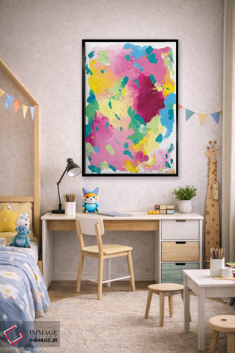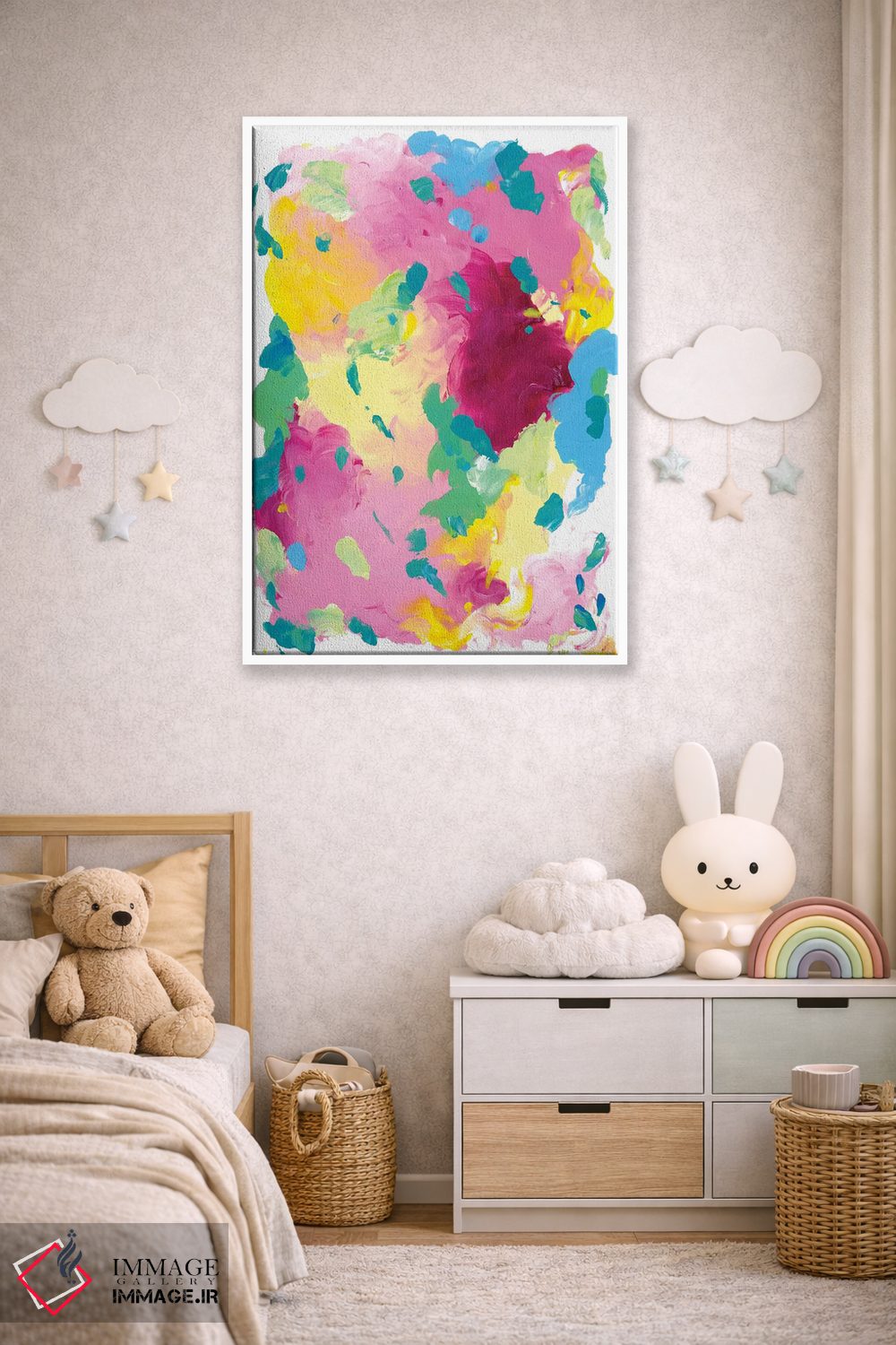 بوم گالری ایماژ نسخهی چیدماناتیوِ باکیفیت از یک اثر هنری است؛ روی کنواس سفیدِ یکدست و بدون اسید با اجرای چاپ هنریِ دقیق به روش جیکلی (Giclée) با رنگهای آرشیوی UltraChrome HDR برای طبیعیتر دیده شدن رنگها روی دیوار؛ این ترکیب باعث میشود گذارهای رنگی نرمتر و بافتها خواناتر شوند. هر تابلو بهصورت سفارشی روی چهارچوب کشیده میشود و با یراق مناسب آمادهی نصب است.