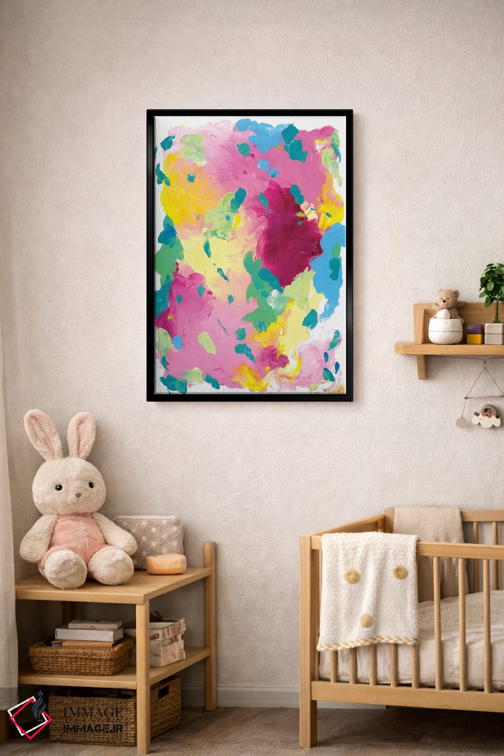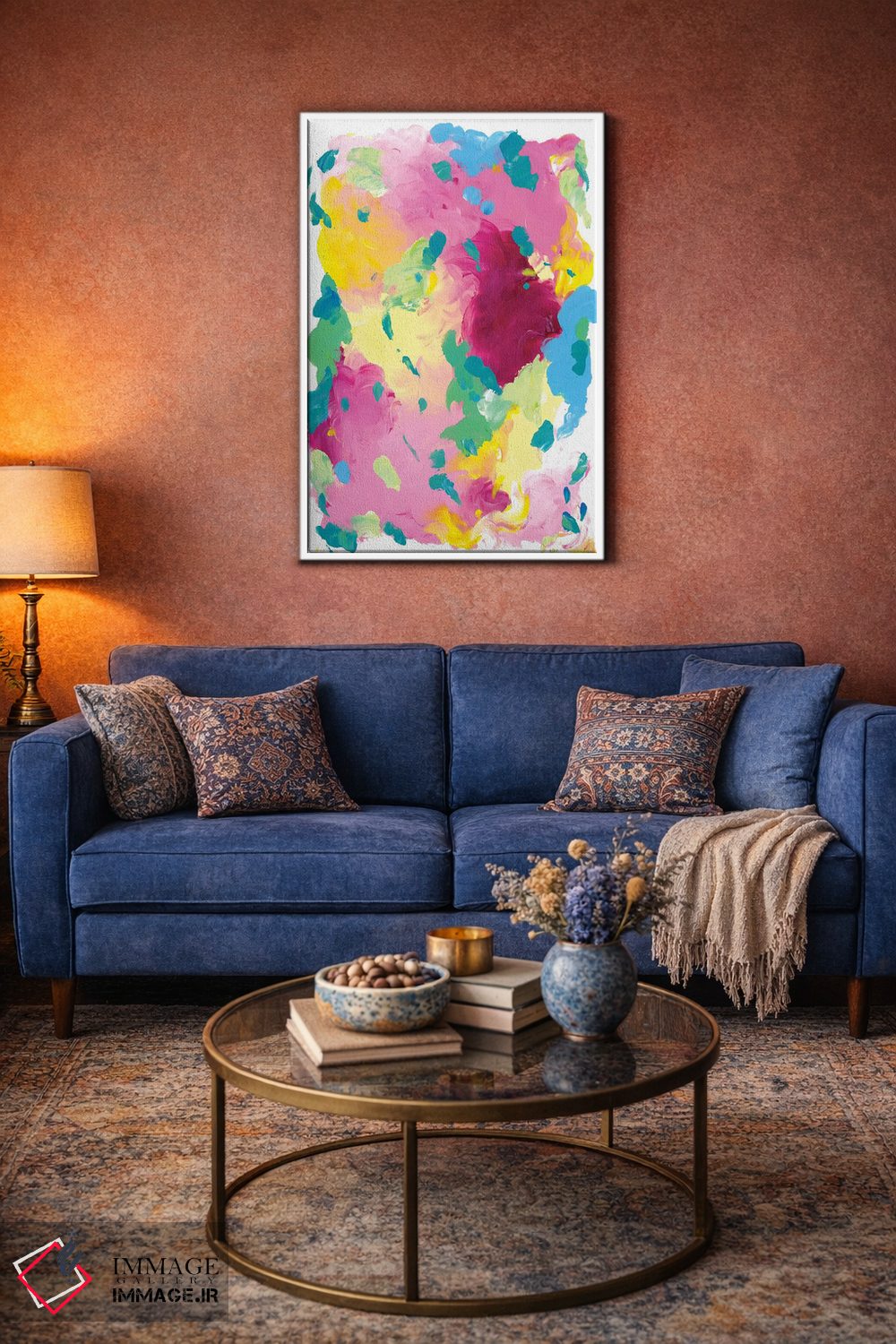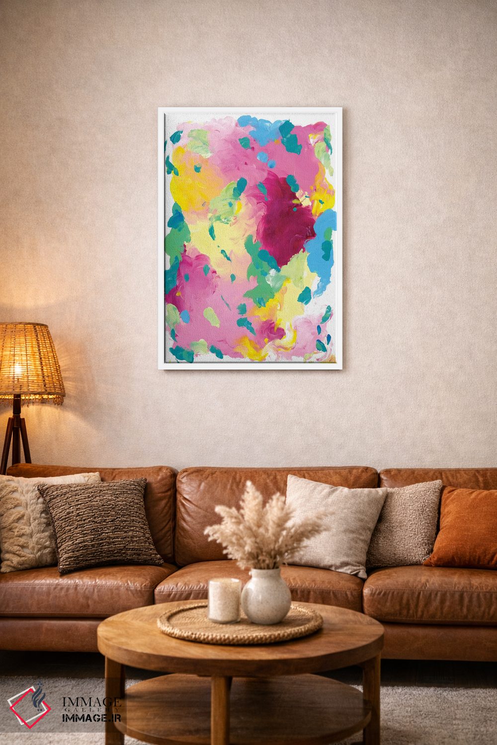 براساس پالت ترکیبی اثر، قاب تیک گرم (چوبی) پیشنهاد اول است و مشکی مات (فریم متوسط) مکمل. برای سفارشهای پروژهای با ابعاد و قابهای اختصاصی با ایماژ در تماس باشید.