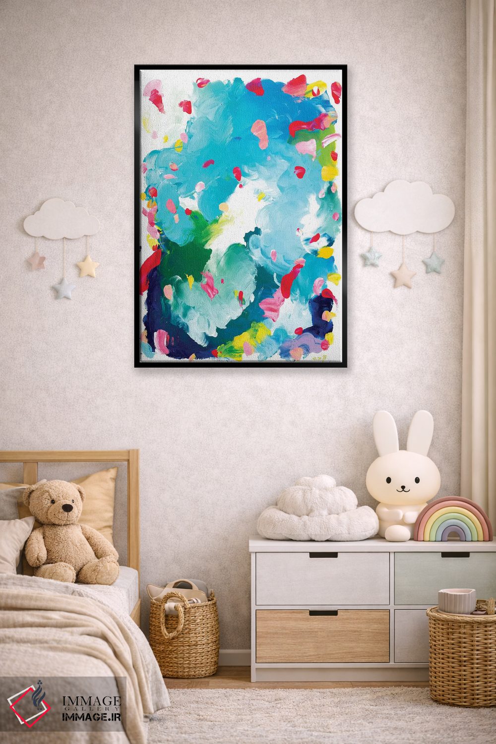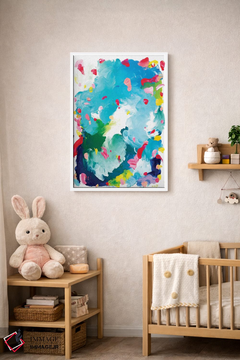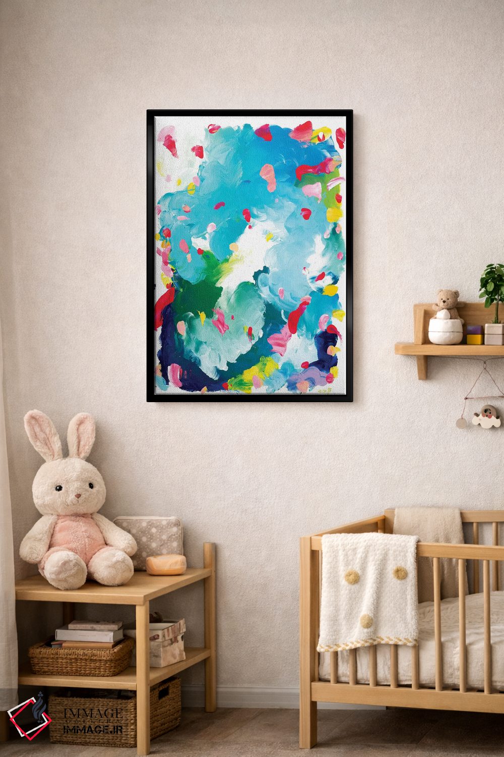 براساس پالت ترکیبی اثر، قاب تیک گرم (چوبی) پیشنهاد اول است و مشکی مات (فریم متوسط) مکمل. برای سفارشهای پروژهای با ابعاد و قابهای اختصاصی با ایماژ در تماس باشید.