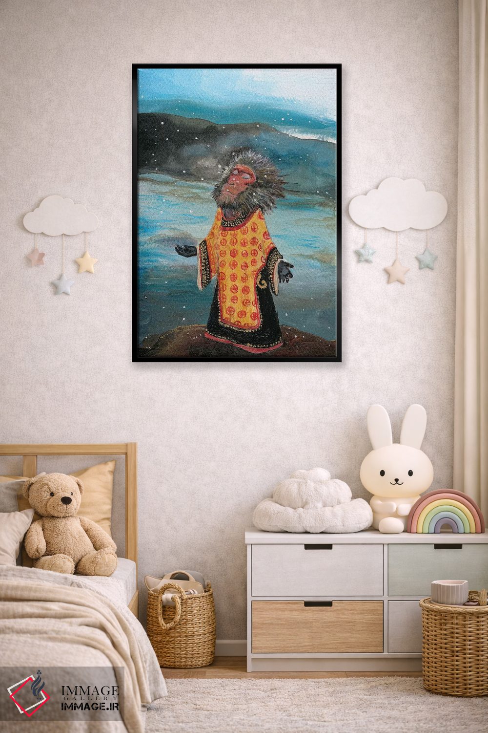 «اولین برف» اثرِ «جانا واشتی» با حالوهوای هنری، صمیمیت و روایت مردمی را وارد دکور میکند؛ مناسب فضاهای گرم و دوستانه.
