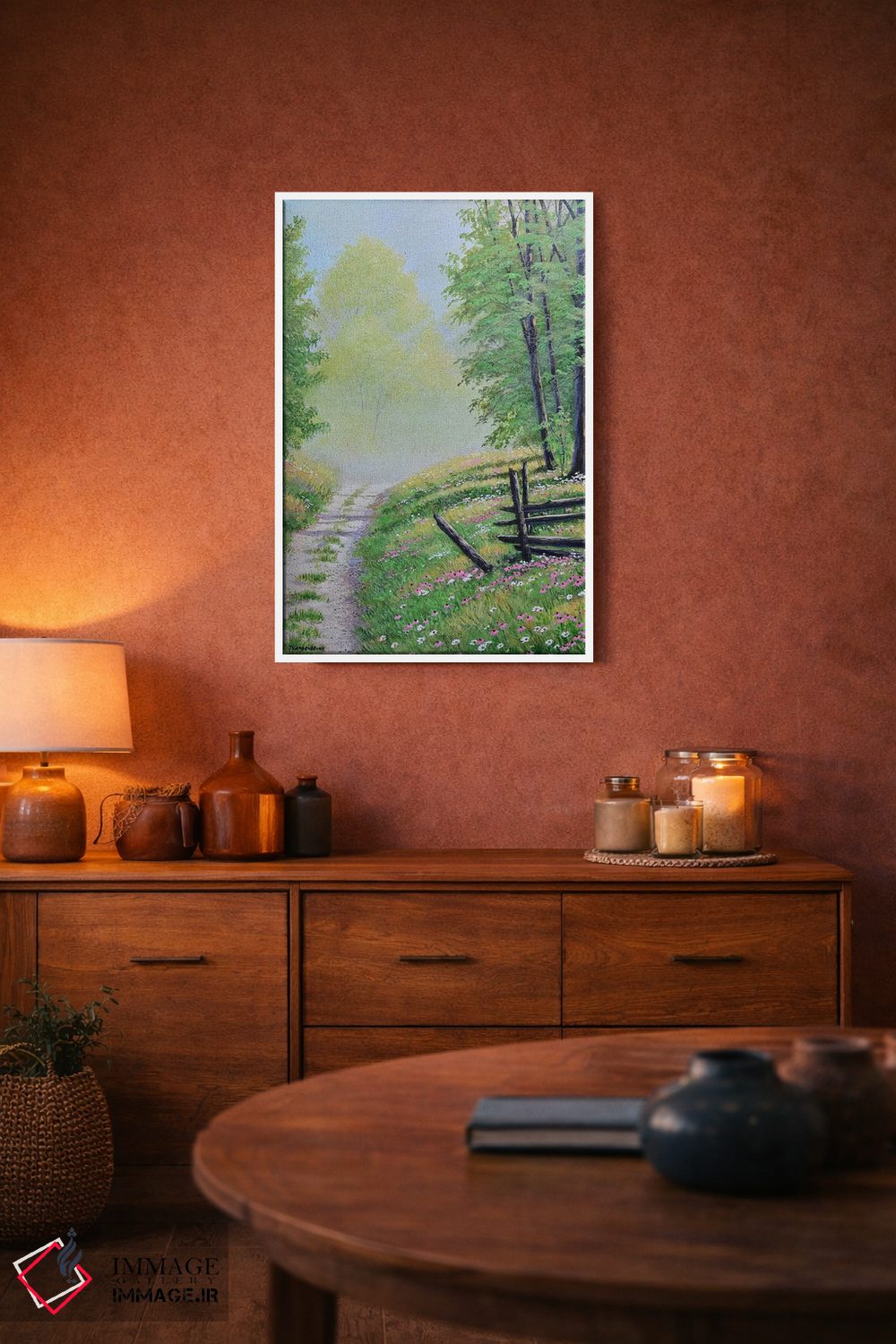 برای گالریوال و چیدمان چندقابی، پیشنهاد دقیقتری میگیرید. اگر ترجیح میدهید اثر در محیط «باز و روشن» دیده شود، یک اکسنت رنگی کوچک کافی است و باعث میشود کار حرفهایتر بنشیند.