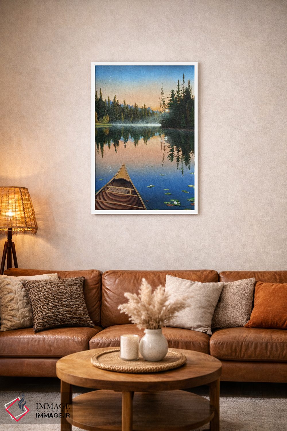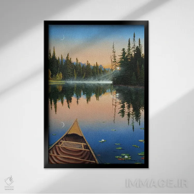 براساس پالت ترکیبی اثر، قاب بلوط روشن (چوبی) پیشنهاد اول است و استخوانی ملایم مکمل. برای سفارشهای پروژهای با ابعاد و قابهای اختصاصی با ایماژ در تماس باشید.