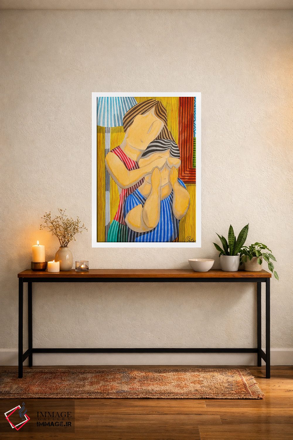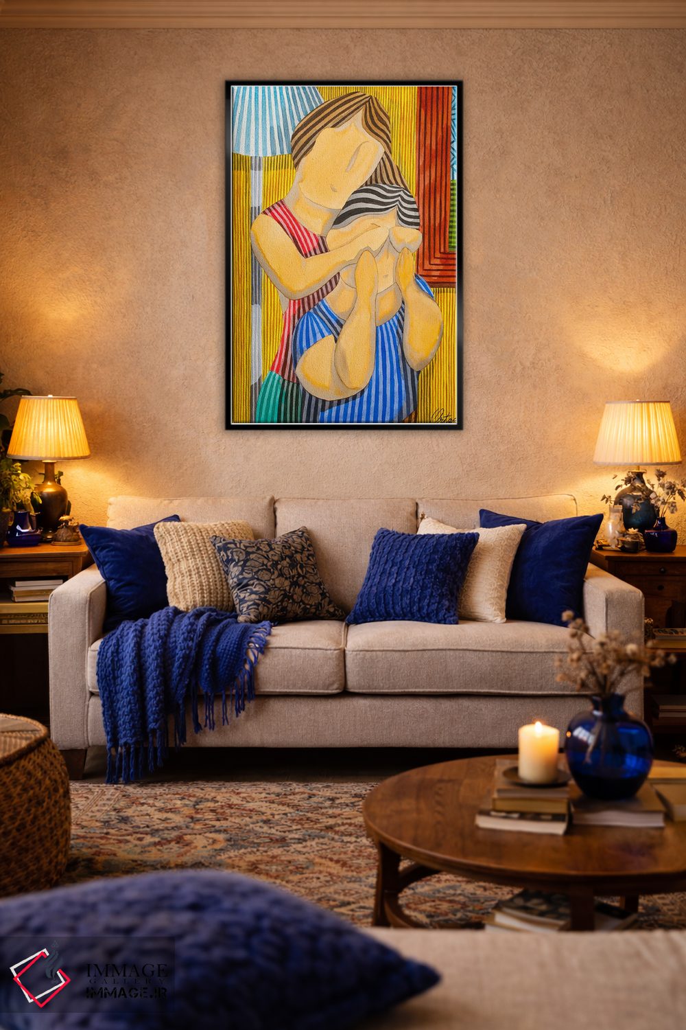 براساس پالت ترکیبی اثر، قاب تیک گرم (چوبی) پیشنهاد اول است و مشکی مات (فریم متوسط) مکمل. برای سفارشهای پروژهای با ابعاد و قابهای اختصاصی با ایماژ در تماس باشید.