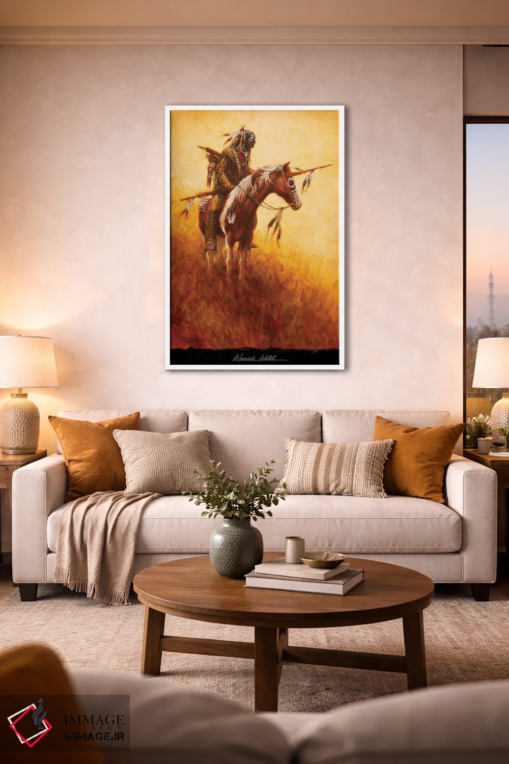 براساس پالت گرم اثر، قاب تیک گرم (چوبی) پیشنهاد اول است و مشکی مات (فریم متوسط) مکمل. برای سفارشهای پروژهای با ابعاد و قابهای اختصاصی با ایماژ در تماس باشید.