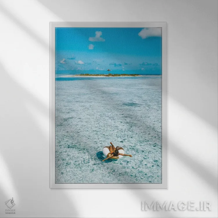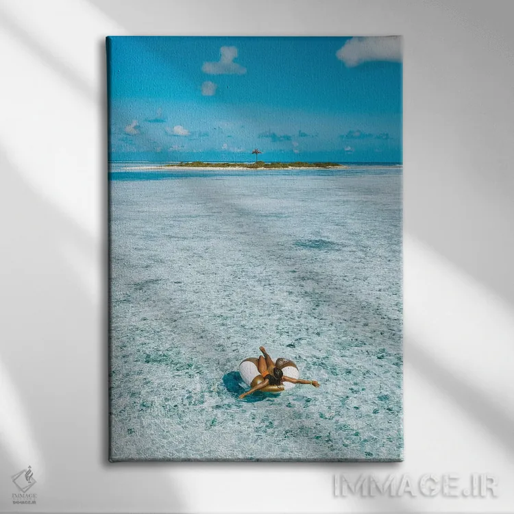 تابلو دکوراتیو دختر با حلقه استخر در جزیره مالدیو اثر جیمز وودیکا - D6B