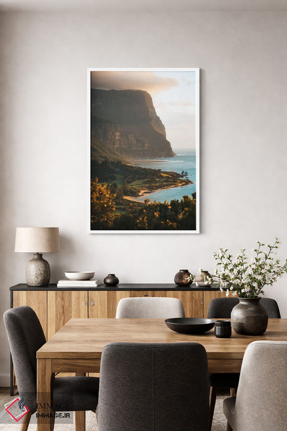 اگر اهل «کم اما درست» هستید، «سکوی تماشای غروب ساحل جزیره آتشفشانی» اثرِ «جیمز وودیکا» روی دیوار، تمیز و دقیق دیده میشود؛ برای محیطهای کاری و استودیوهای خلاق پیشنهاد میشود. در کنار گیاهان آپارتمانی هم جلوهٔ لطیفی پیدا میکند.