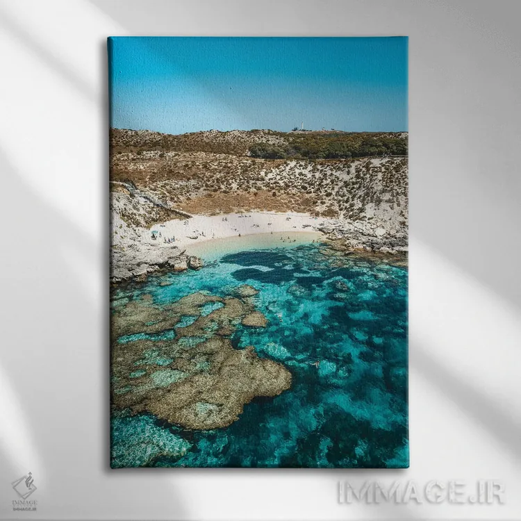تابلو دکوراتیو نمای هوایی ساحل صخره مرجانی فیروزه ای اثر جیمز وودیکا