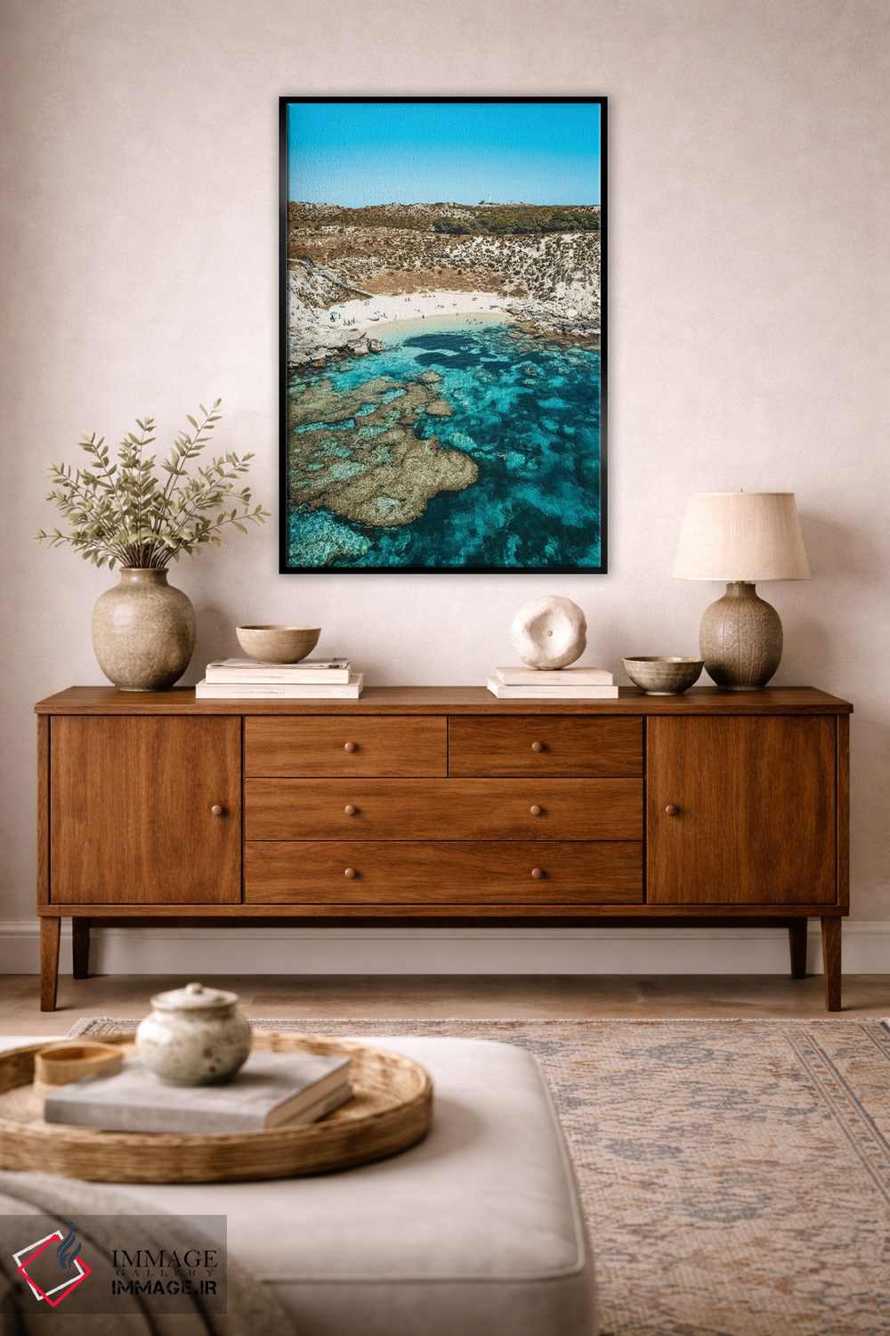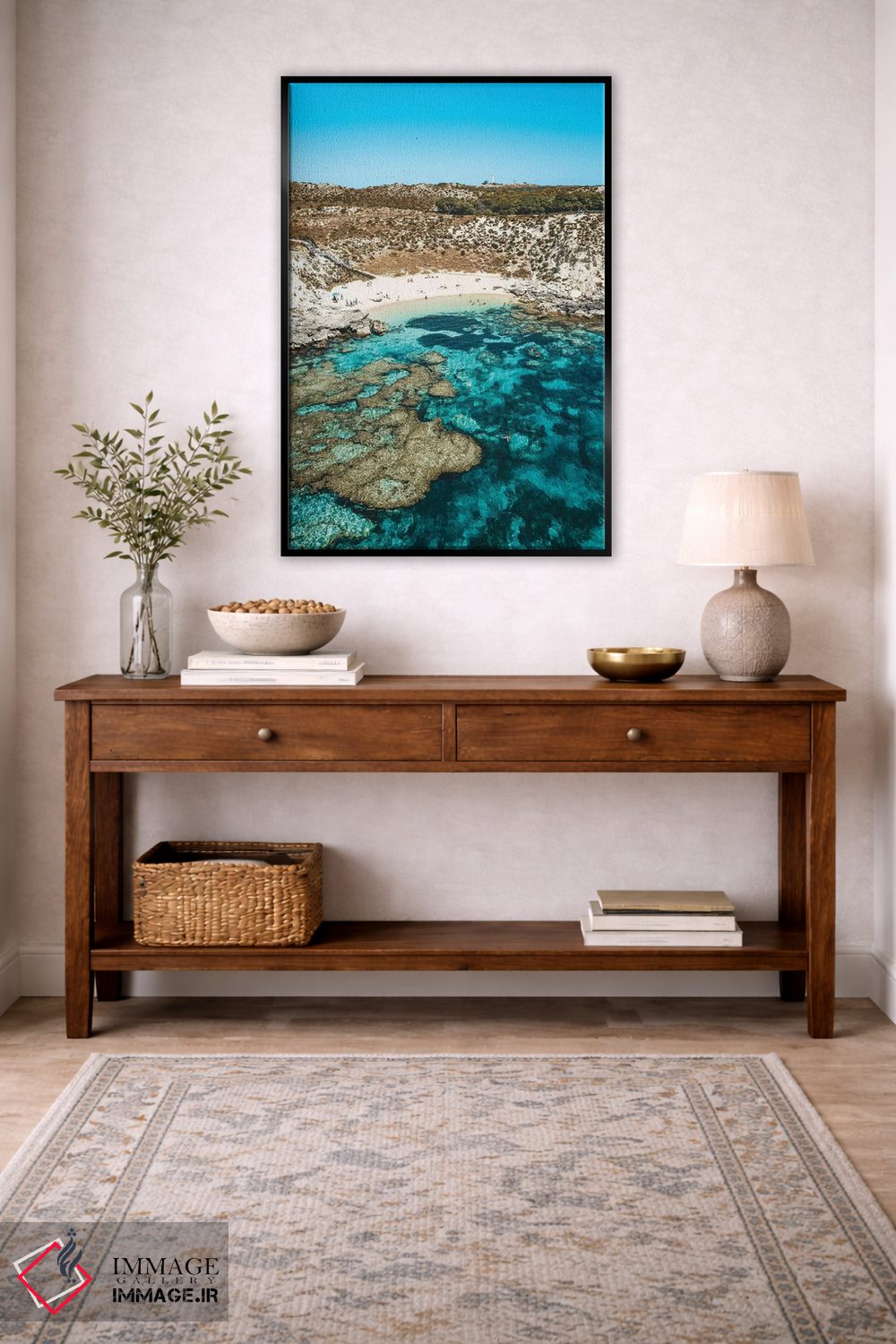 در نگاه اول، «نمای هوایی ساحل صخره مرجانی فیروزهای» اثرِ «جیمز وودیکا» جلوهٔ رنگها را طبیعیتر و متعادلتر نشان میدهد؛ برای محیطهای کاری و استودیوهای خلاق پیشنهاد میشود. اگر میخواهید مهمانها مکث کنند، این اثر دلیل خوبیست.