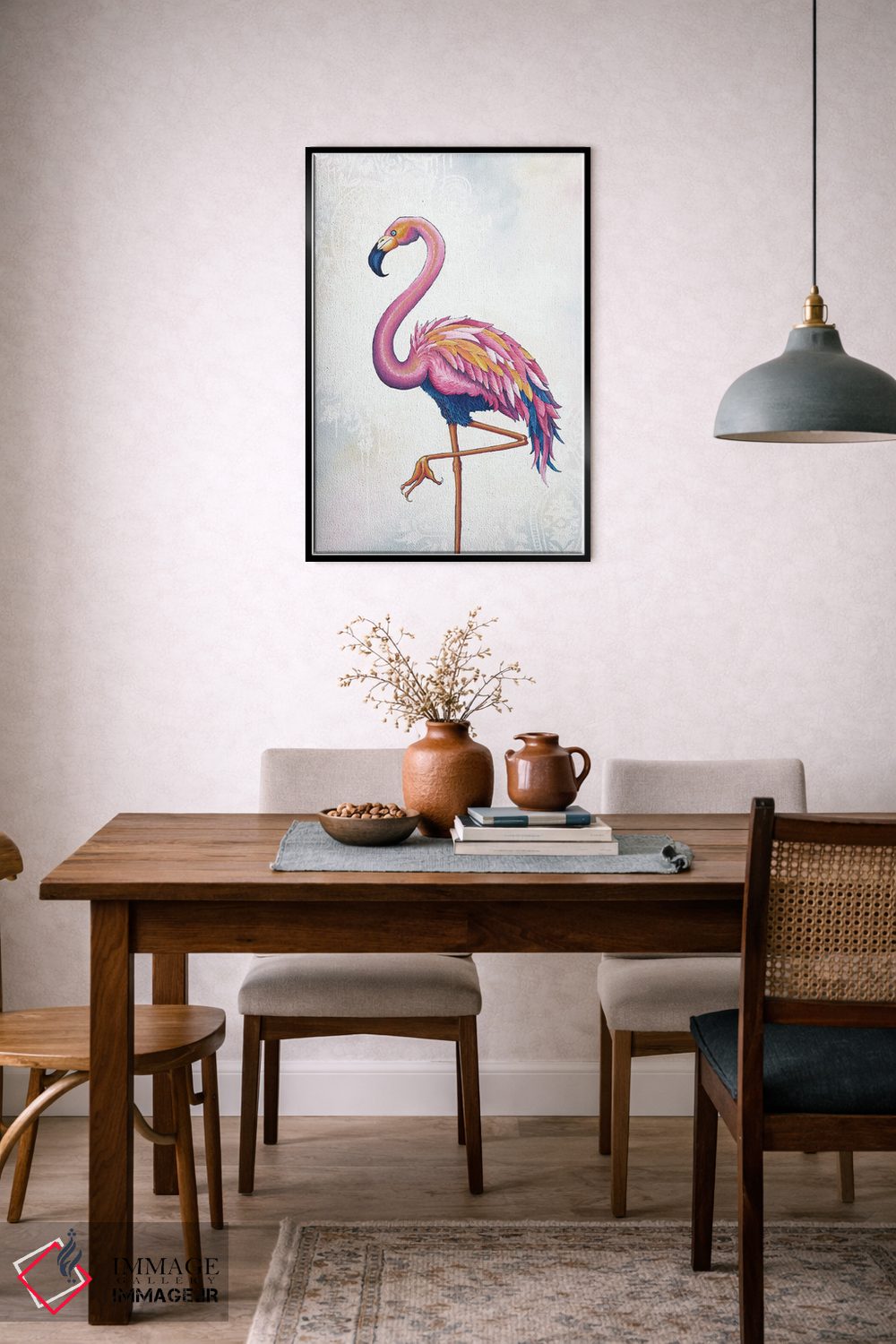 تابلو دکوراتیو فلامینگو اثر جکی ون توبل - نمای روبه‌رو روی دیوار