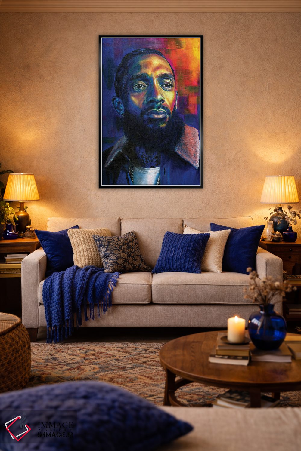 در یک جمله، «نیپسی (احتمالاً نیپسی هاسل، خواننده)» اثرِ «جناویو لویی» در کنار مبلمان، خوشنشین و هماهنگ مینشیند؛ برای فضاهایی که میخواهید آرام اما جدی دیده شوند پیشنهاد میشود. به فضا حس «گالری خانگی» میدهد، بدون اینکه اغراق کند.