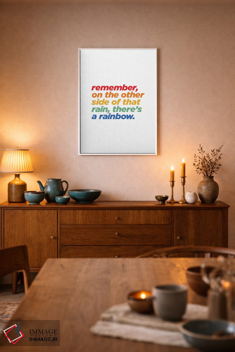 براساس پالت ترکیبی اثر، قاب تیک گرم (چوبی) پیشنهاد اول است و مشکی مات (فریم متوسط) مکمل. برای سفارشهای پروژهای با ابعاد و قابهای اختصاصی با ایماژ در تماس باشید.
