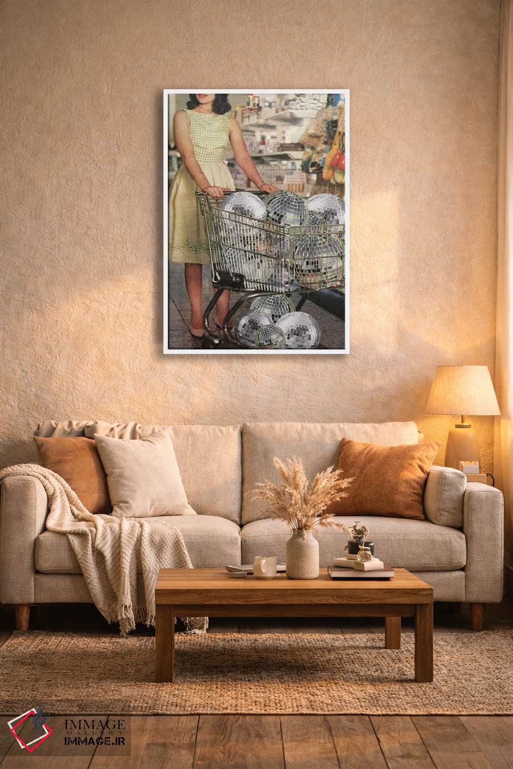 برای ترکیب با گلدانهای سبز، پارچههای ساده و نور گرم، «سوپرمارکت دیسکوانت (تلفظ خاص دیسکونت Discount)» اثرِ «جولیا والک» با موضوعِ این اثر انتخابی هماهنگ است.