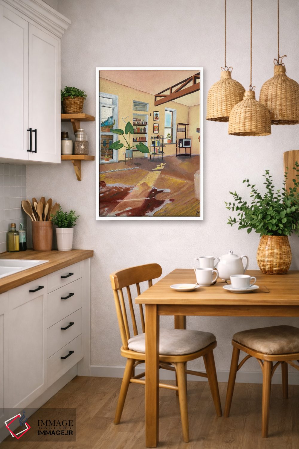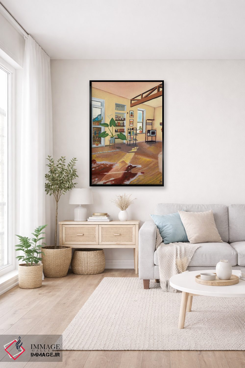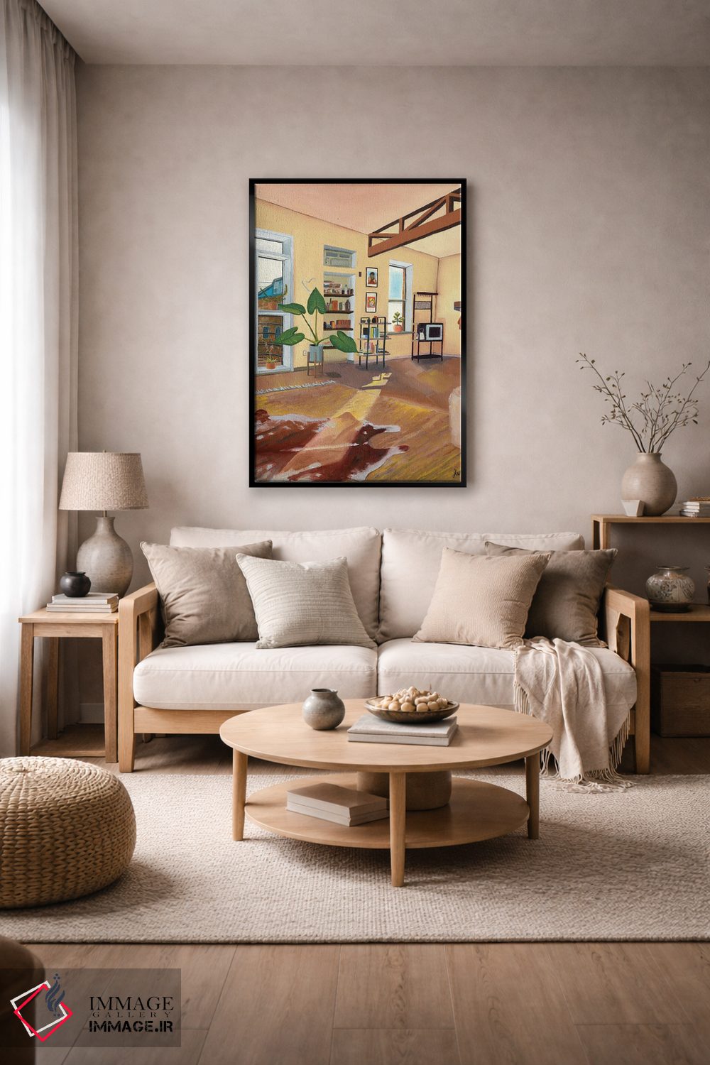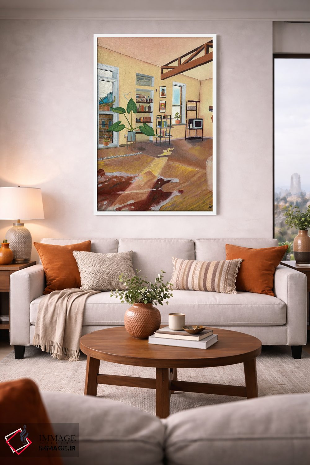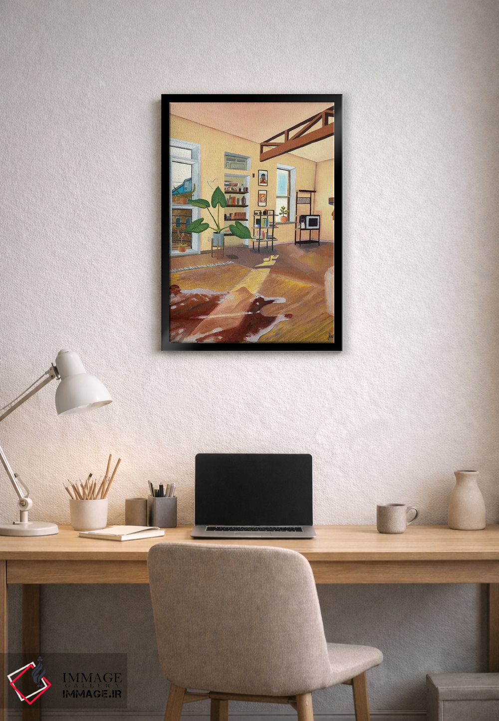 براساس پالت گرم اثر، قاب تیک گرم (چوبی) پیشنهاد اول است و مشکی مات (فریم متوسط) مکمل. برای سفارشهای پروژهای با ابعاد و قابهای اختصاصی با ایماژ در تماس باشید.