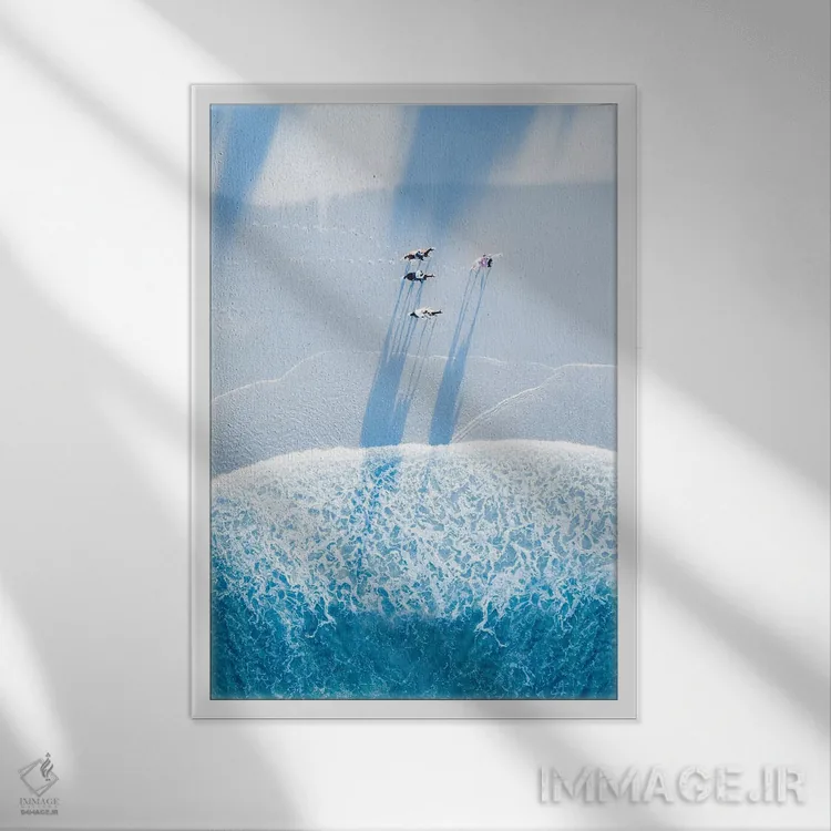 براساس پالت سرد اثر، قاب سفید مات (فریم باریک) پیشنهاد اول است و نقرهای برسخورده (متالیک) مکمل. برای سفارشهای پروژهای با ابعاد و قابهای اختصاصی با ایماژ در تماس باشید.