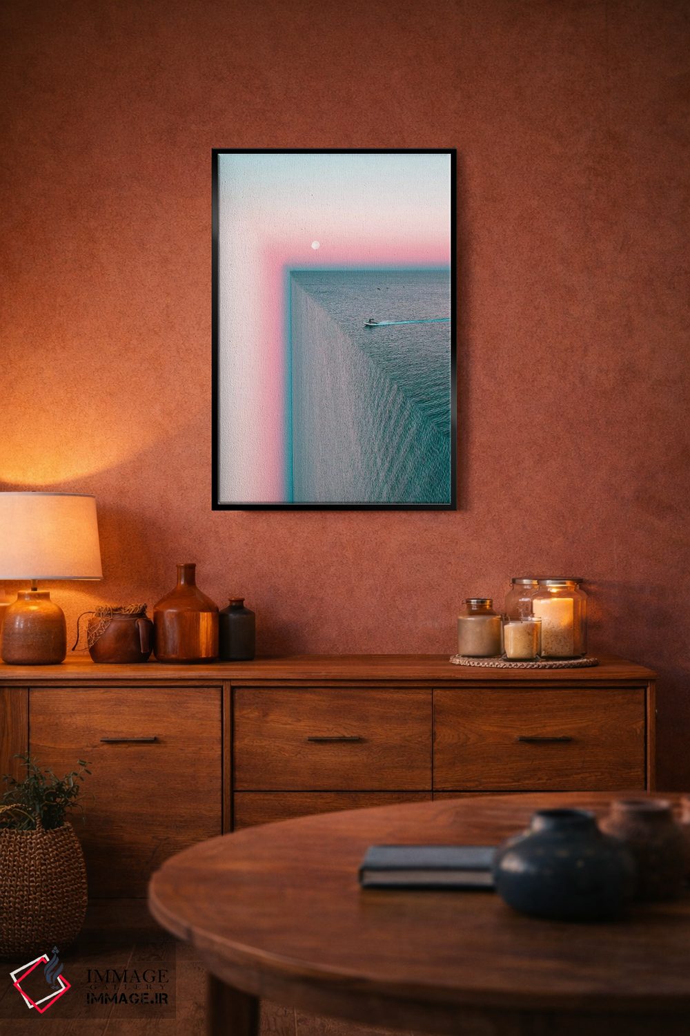 براساس پالت ترکیبی اثر، قاب تیک گرم (چوبی) پیشنهاد اول است و مشکی مات (فریم متوسط) مکمل. برای سفارشهای پروژهای با ابعاد و قابهای اختصاصی با ایماژ در تماس باشید.
