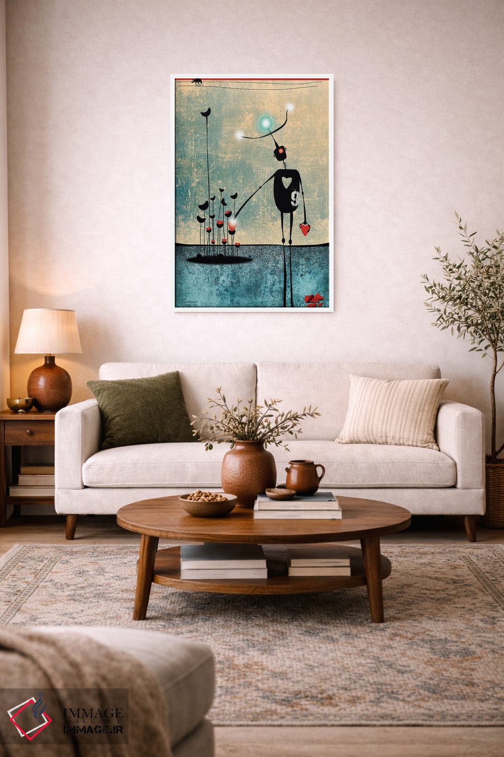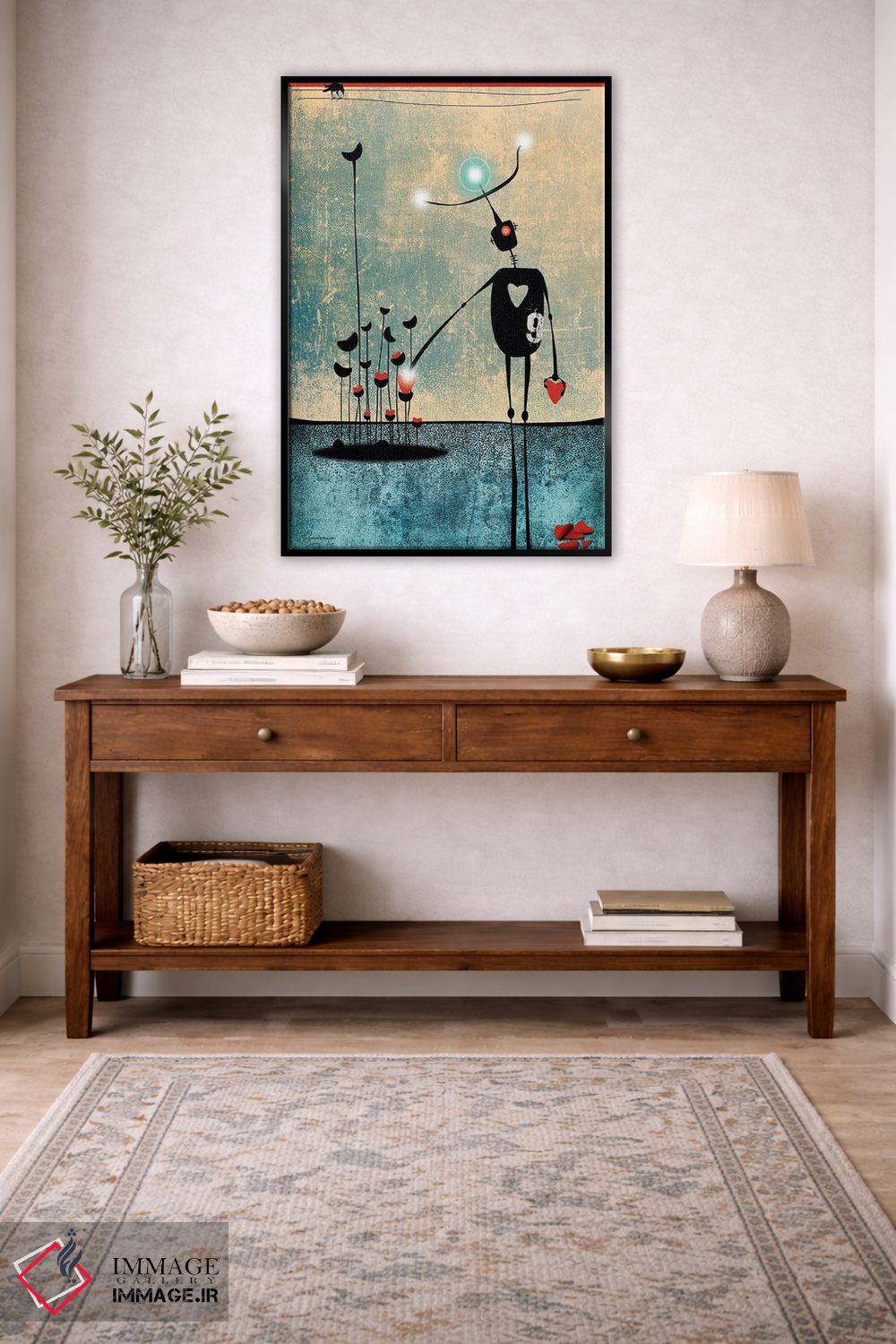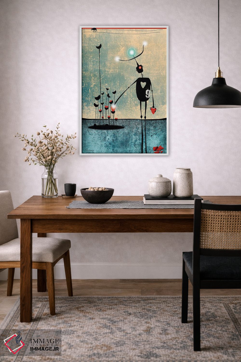 این تابلو با این اثر و حس پرداختِ هنری، در دکورهای مدرن هم خوب مینشیند؛ چون روایتش ظریف است و فضا را ریتم فضا را منظم نگه میدارد.