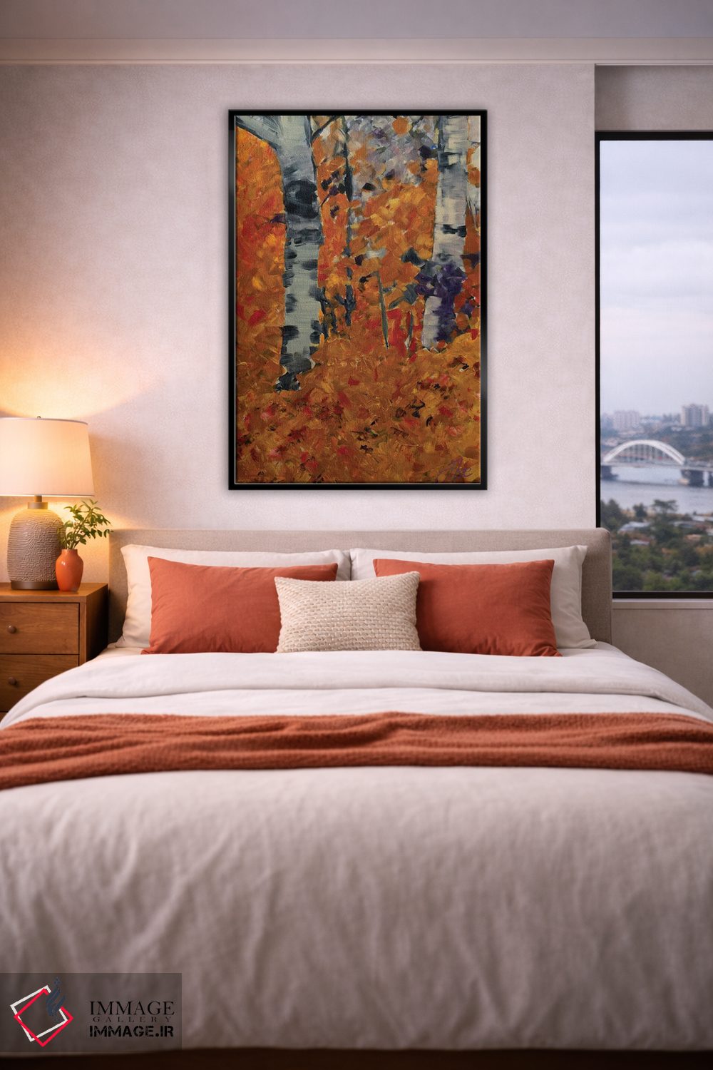 اگر به دکورهای طبیعی علاقه دارید، «پاییز» اثرِ «جنی لی» در کنار چوب و پارچههای روشن، عالی مینشیند، برای کنار میز آرایش یا کنسول گزینهٔ مناسبیست. در کنار گیاهان آپارتمانی، هماهنگتر هم میشود.