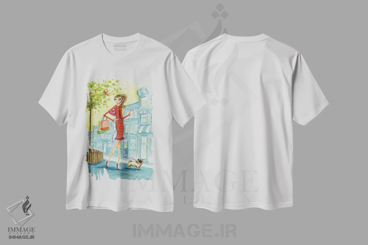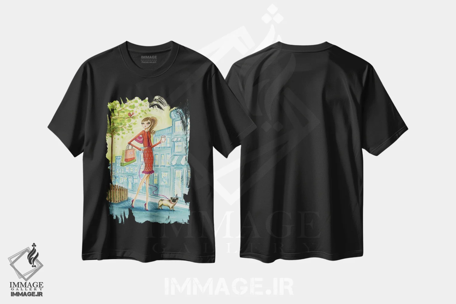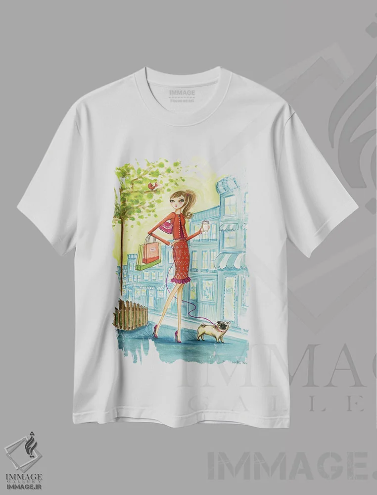 تیشرت طرح دار خرید در شهر با توله سگ اثر بلا پیلار