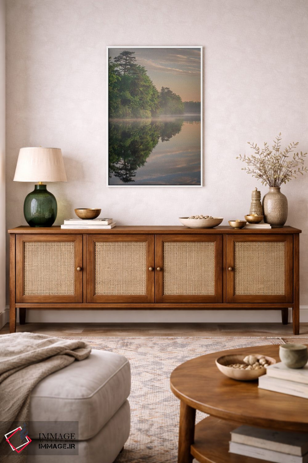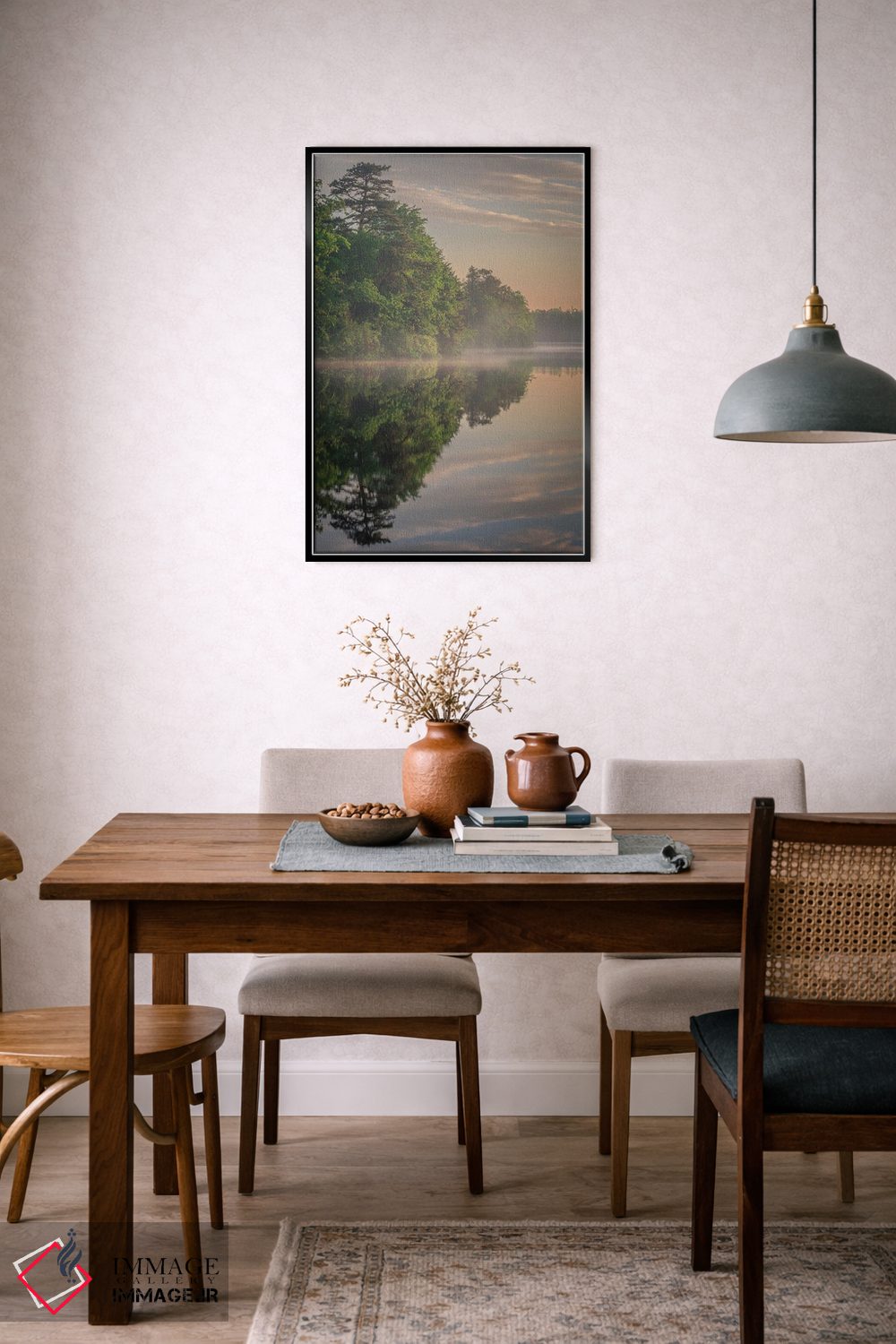 برای فضایی که میخواهید مرتبتر و حرفهایتر دیده شود، «New Jersey، Pinelands National Reserve. Sunrise Reflections In Lake.، بازتاب طلوع خورشید در دریاچه (ذخیرهگاه ملی پایلندز، نیوجرسی)» اثرِ «جینز گالری (گالری هنری/تصویر)» اتاق را جمعوجورتر و مرتبتر نشان میدهد؛ برای کنار کتابخانه یا میز کار پیشنهاد میشود. اگر میخواهید یک اثر همیشه «بهروز» بماند، انتخاب خوبیست.