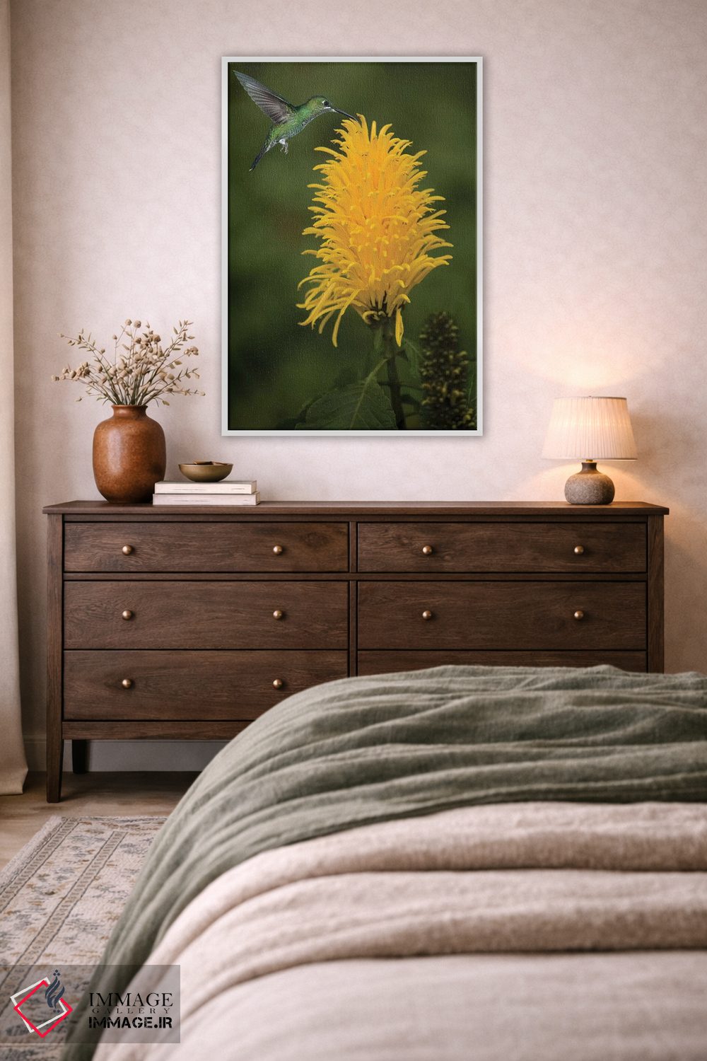 برای دیواری که میخواهید سلیقهتان را آرام و دقیق نشان بدهد، «کارائیب، کاستاریکا. زنبورک سبز تاجدار در حال تغذیه» اثرِ «جینز گالری (گالری هنری/تصویر)» حس گالریوار را بیسروصدا وارد خانه میکند؛ برای نشیمنهای صمیمی و پذیراییهای شیک پیشنهاد میشود. جزئیاتش نزدیکِ کار هم ارزش نگاه دارد.