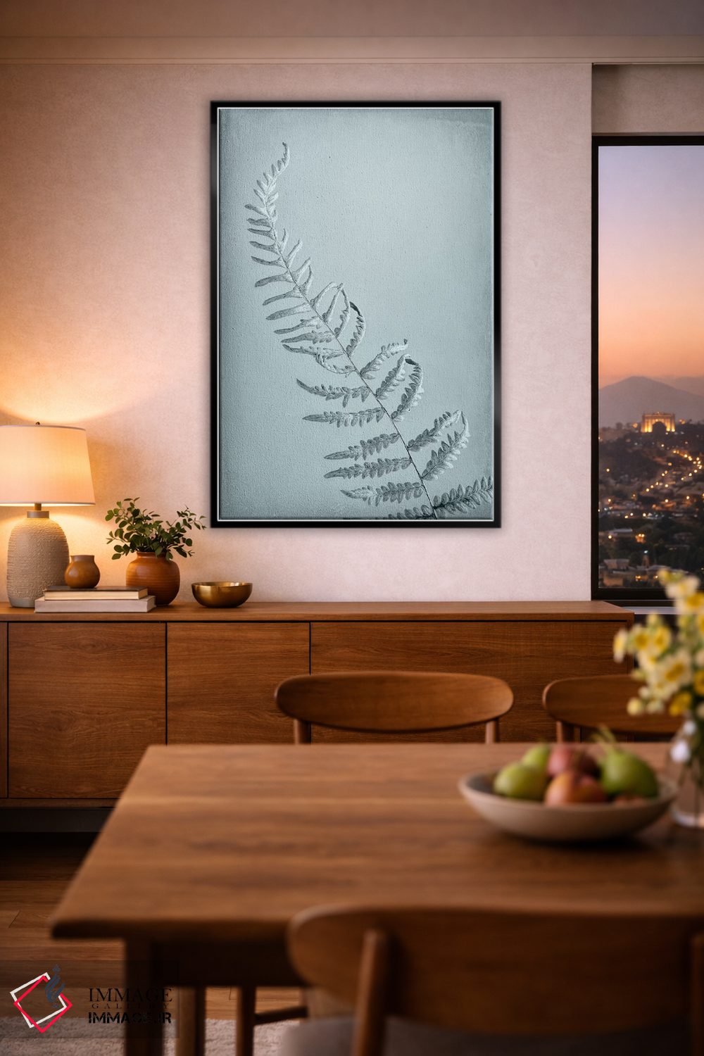 براساس پالت خنثی اثر، قاب مشکی مات (فریم باریک) پیشنهاد اول است و سفید مات (فریم باریک) مکمل. برای سفارشهای پروژهای با ابعاد و قابهای اختصاصی با ایماژ در تماس باشید.