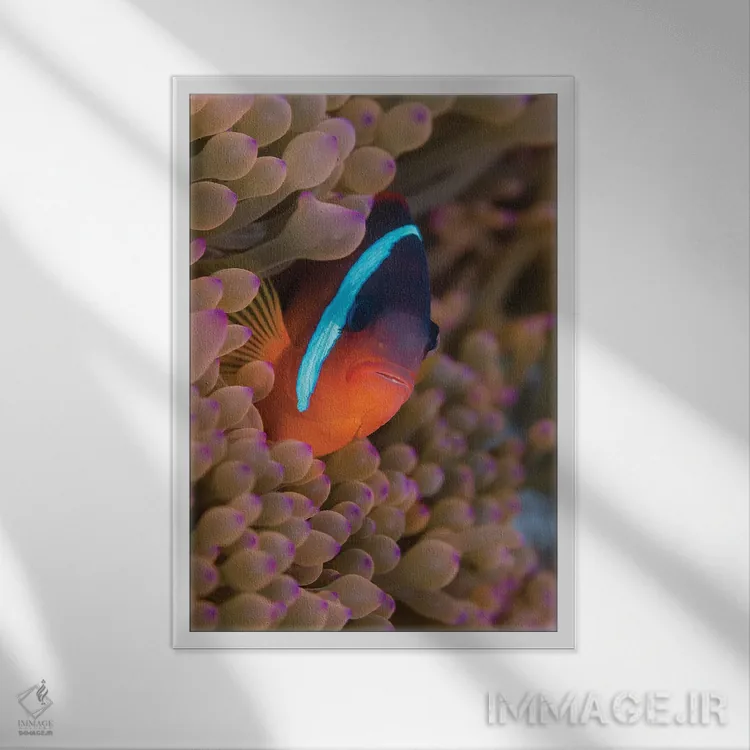 تابلو دکوراتیو فیجی. ماهی دلقک پنهان شده میان شقایق های دریایی اثر جینز گالری