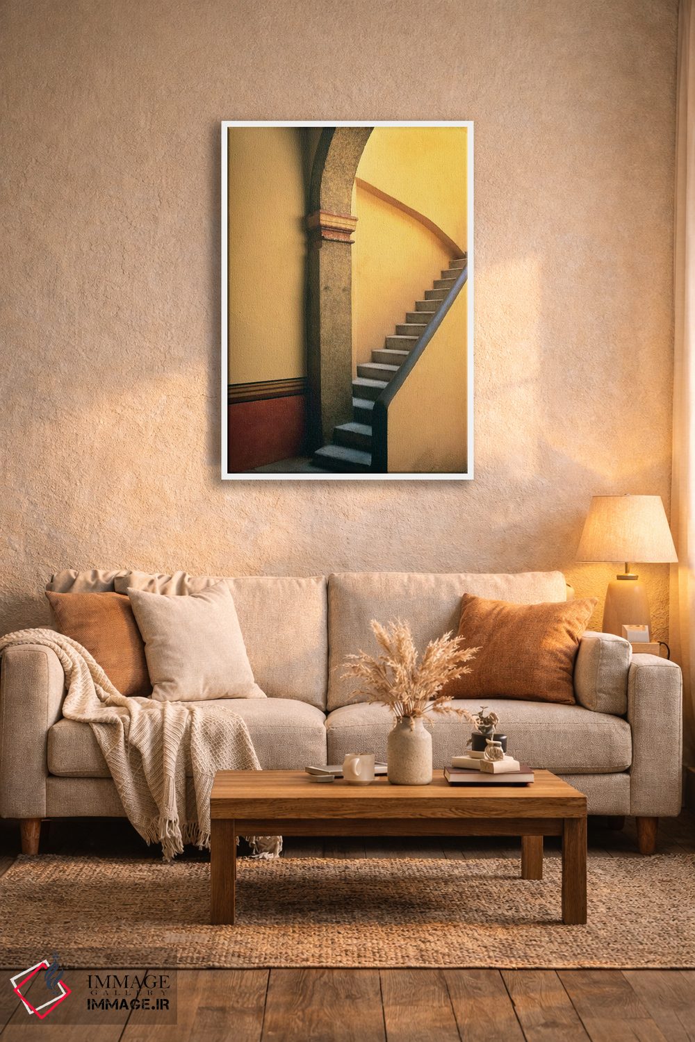 بوم گالری ایماژ طوری طراحی شده که اثر روی دیوار «پرداختشده» و حرفهای دیده شود—نه پرزرقوبرقِ بیپایه؛ بلکه دقیق و خوشپرداخت. بافت ظریف کنواس باعث میشود حس اثر هنری را در نگاه نزدیک نگه میدارد بدون اغراق؛ فقط دقیقتر. چاپ جیکلی (Giclée) کمک میکند برای آرتپرینتهای جدی استاندارد رایج است بهخصوص وقتی نور موضعی ملایم داشته باشید. حاصل کار، یک تابلو خوشنشین است که هم از دور اثرگذار است و هم از نزدیک خوشخوان؛ و اگر بخواهید، میتوان چیدمان را برای گالریوال هم پیشنهاد داد.