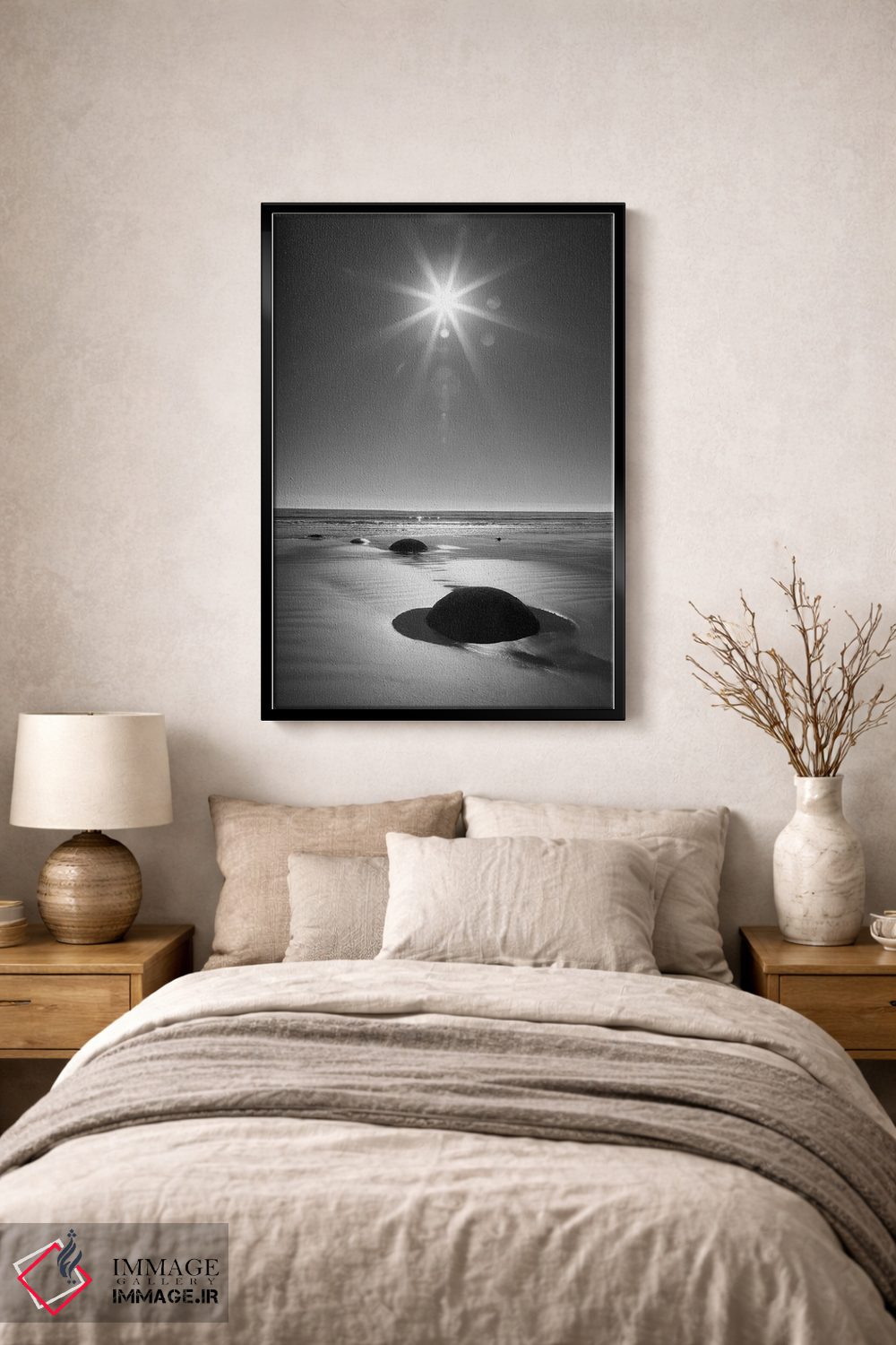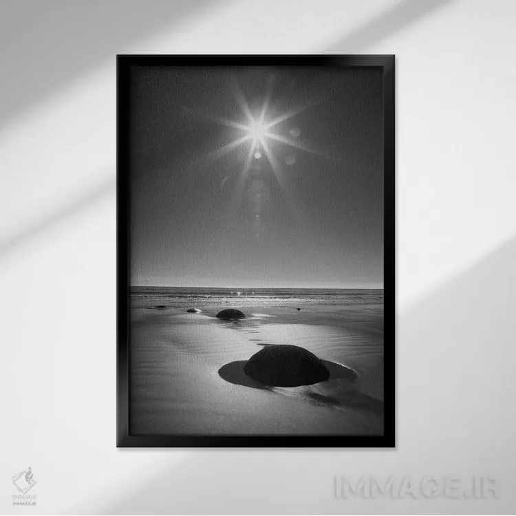 تابلو دکوراتیو South Island. BW starburst over Moeraki Boulders Scenic Rese… اثر جینز گالری - نمای روبه‌رو روی دیوار
