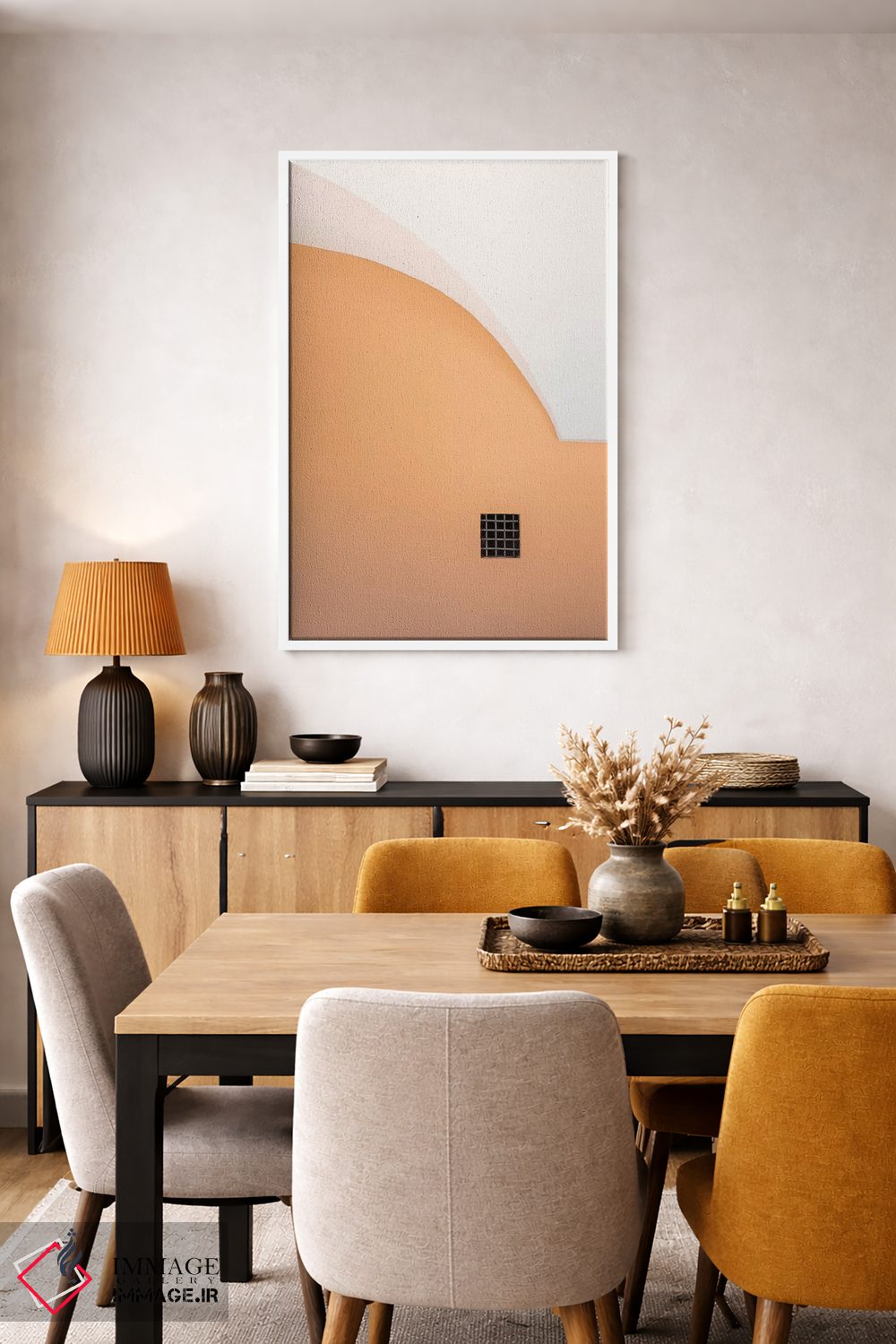 براساس پالت گرم اثر، قاب تیک گرم (چوبی) پیشنهاد اول است و مشکی مات (فریم متوسط) مکمل. برای سفارشهای پروژهای با ابعاد و قابهای اختصاصی با ایماژ در تماس باشید.