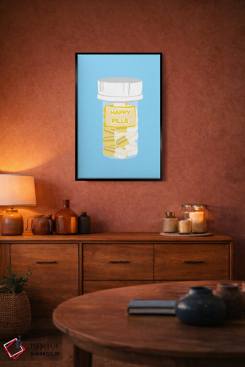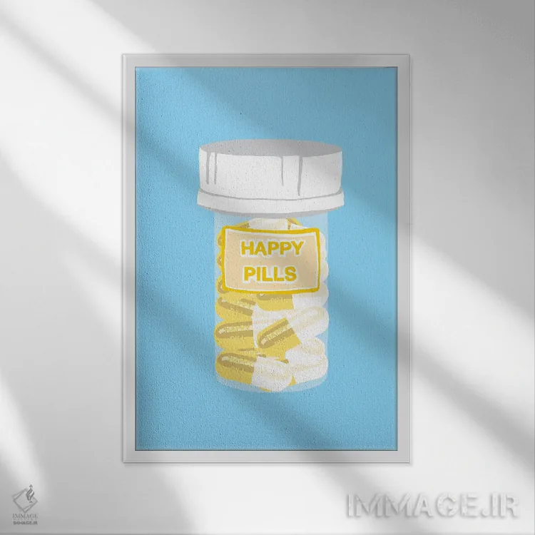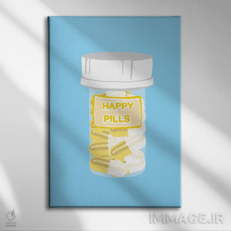 تابلو دکوراتیو بطری قرص خوشحالی آبی اثر جیمی متز