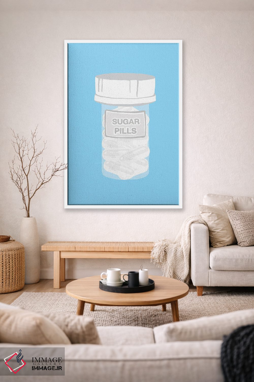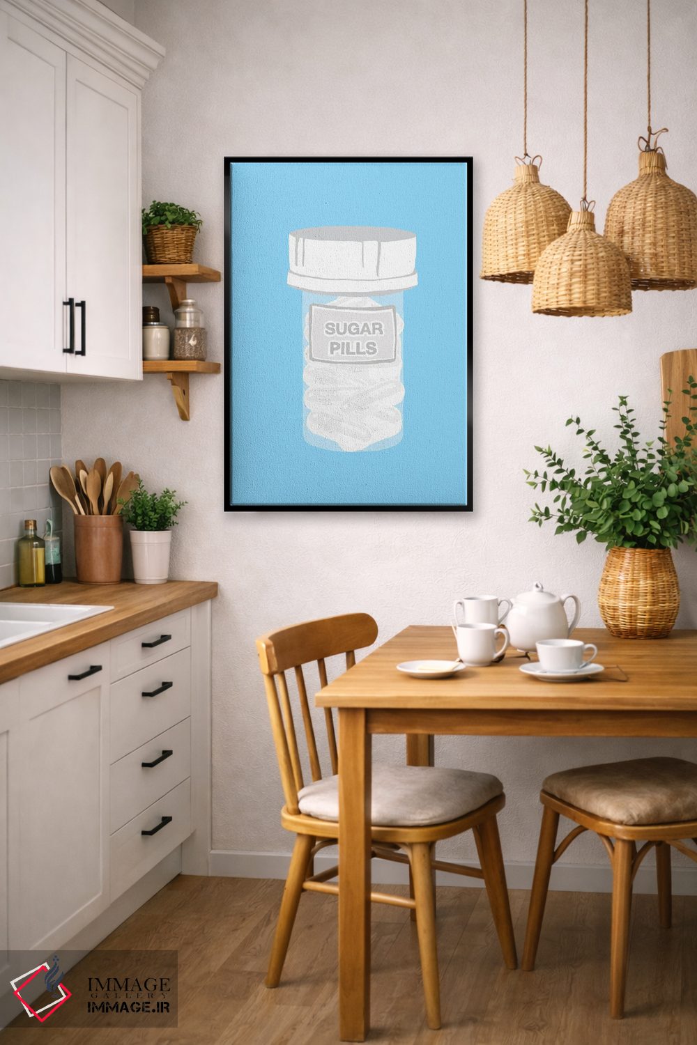 اگر دوست داری دیوار خانه «کمحرف اما باکلاس» باشد، «بطری قرص قندی آبی» اثرِ «جیمی متز» با موضوعِ این اثر انتخاب خوبی است.