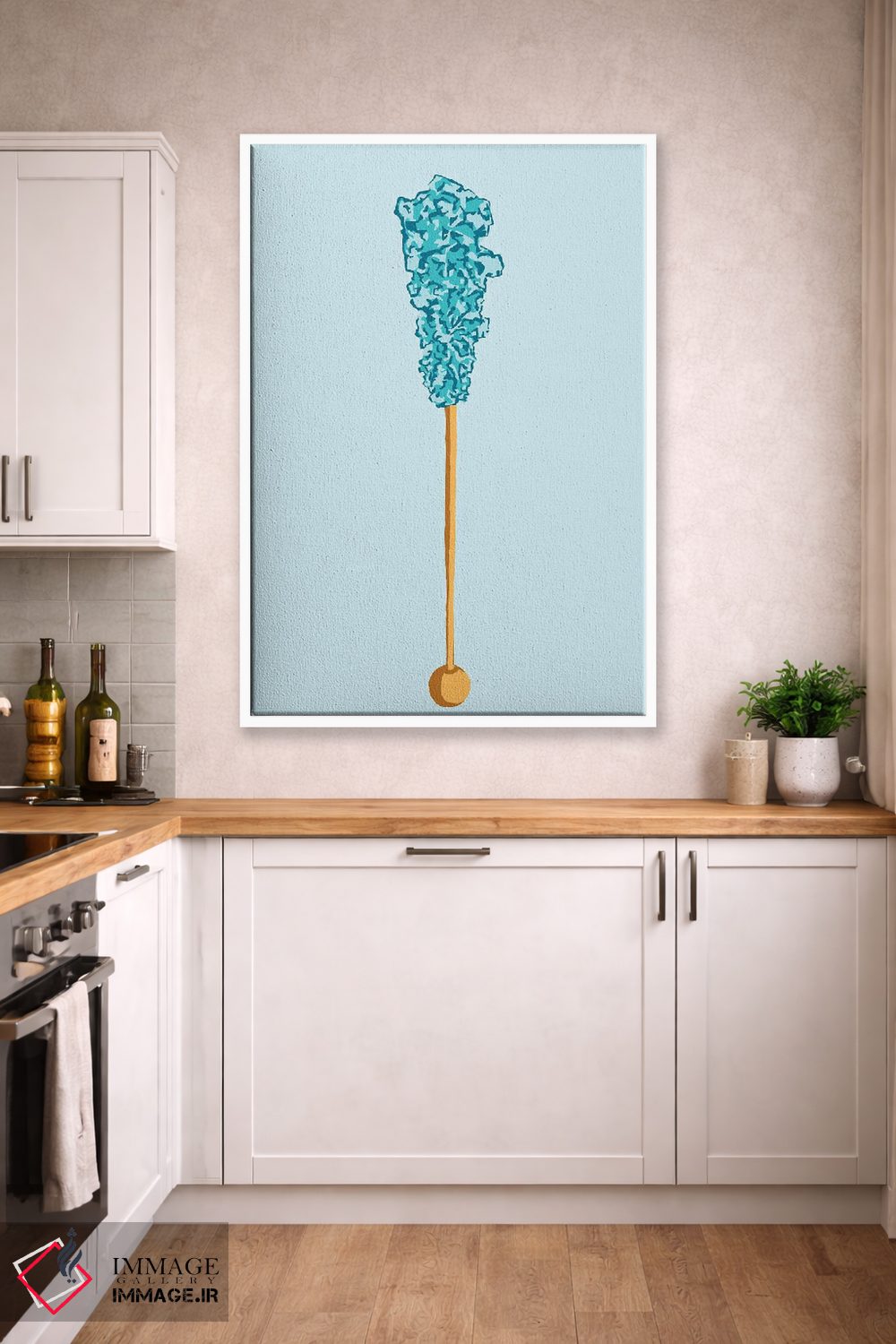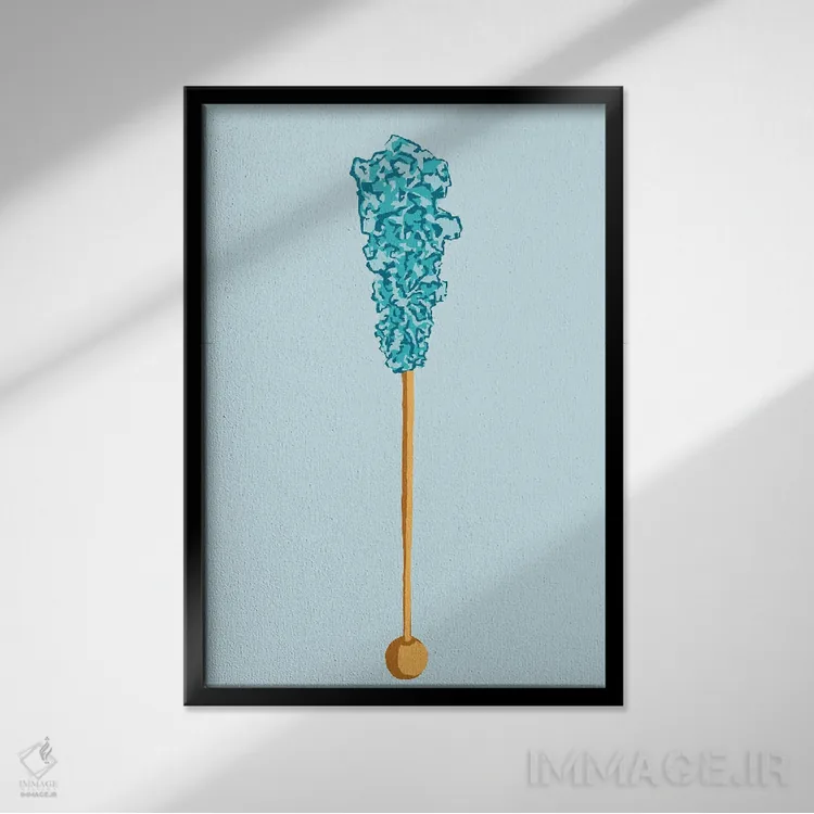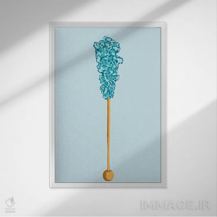 برای یک نقطهٔ کانونی قوی، «آبنبات صخرهای سبزآبی و سبزآبی روشن» اثرِ «جیمی متز» در سبک هنری گزینهی درخشانی است—بهخصوص با موضوعِ این اثر.