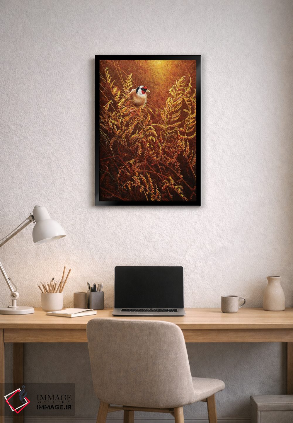 در «سرخسهای پاییزی» اثرِ «جرمی پاول»، حضور حیوانات یک لبخند ریز به چیدمان میدهد؛ برای دیوار کنار میز کار انتخابی خوشسلیقه است. برای دیوار گالریوار هم گزینهٔ خوبیست.