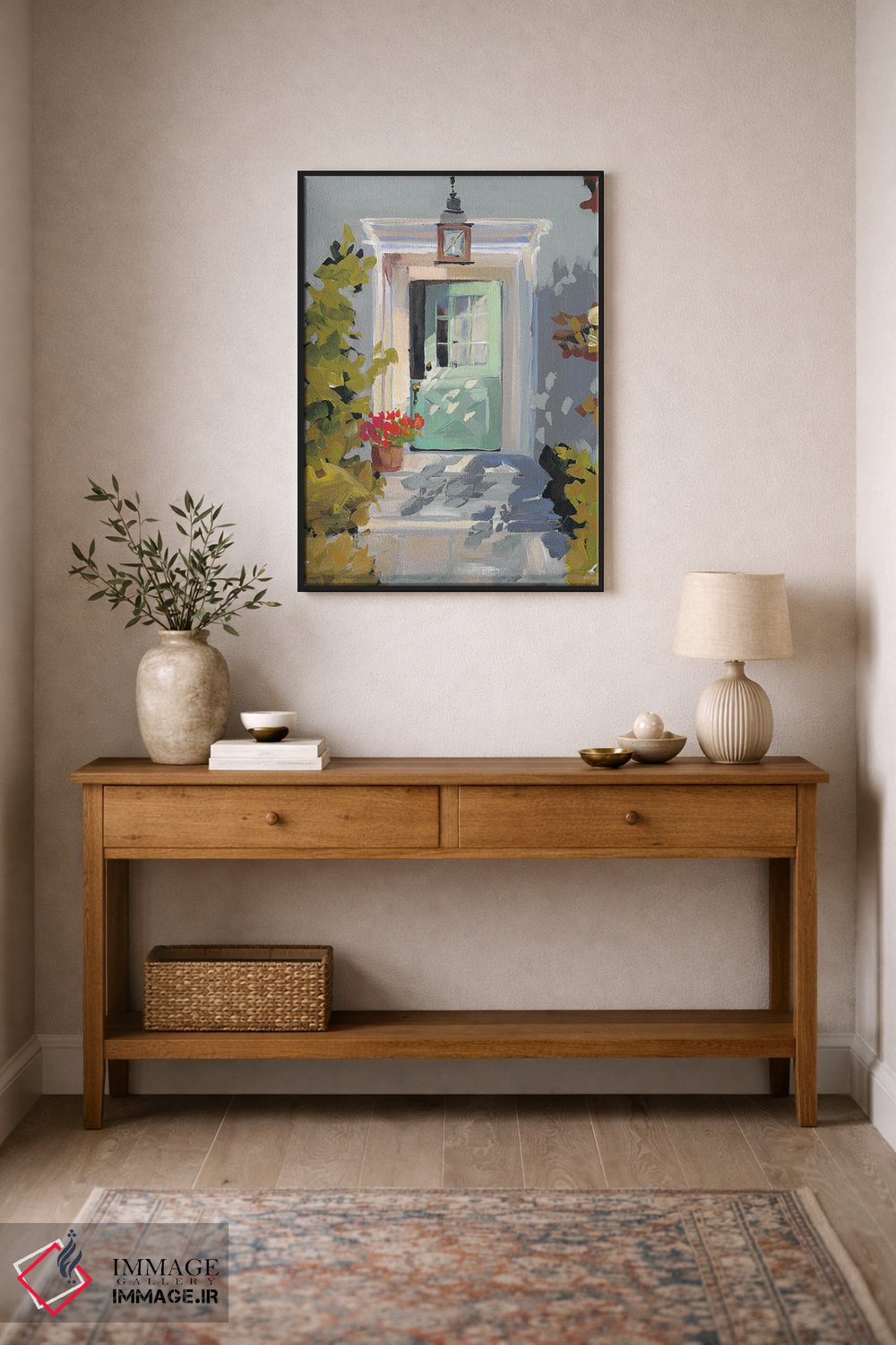 براساس پالت ترکیبی اثر، قاب تیک گرم (چوبی) پیشنهاد اول است و مشکی مات (فریم متوسط) مکمل. برای سفارشهای پروژهای با ابعاد و قابهای اختصاصی با ایماژ در تماس باشید.
